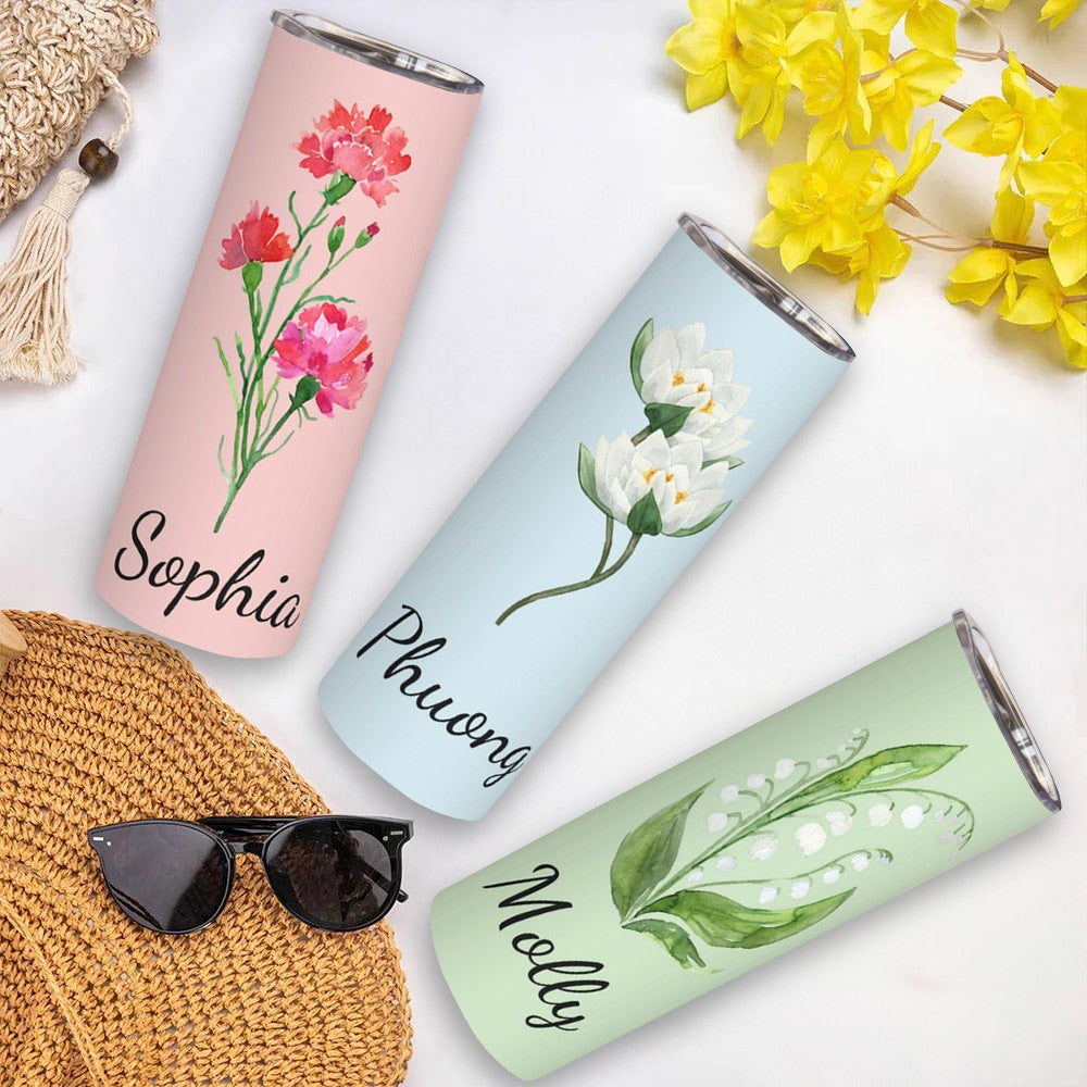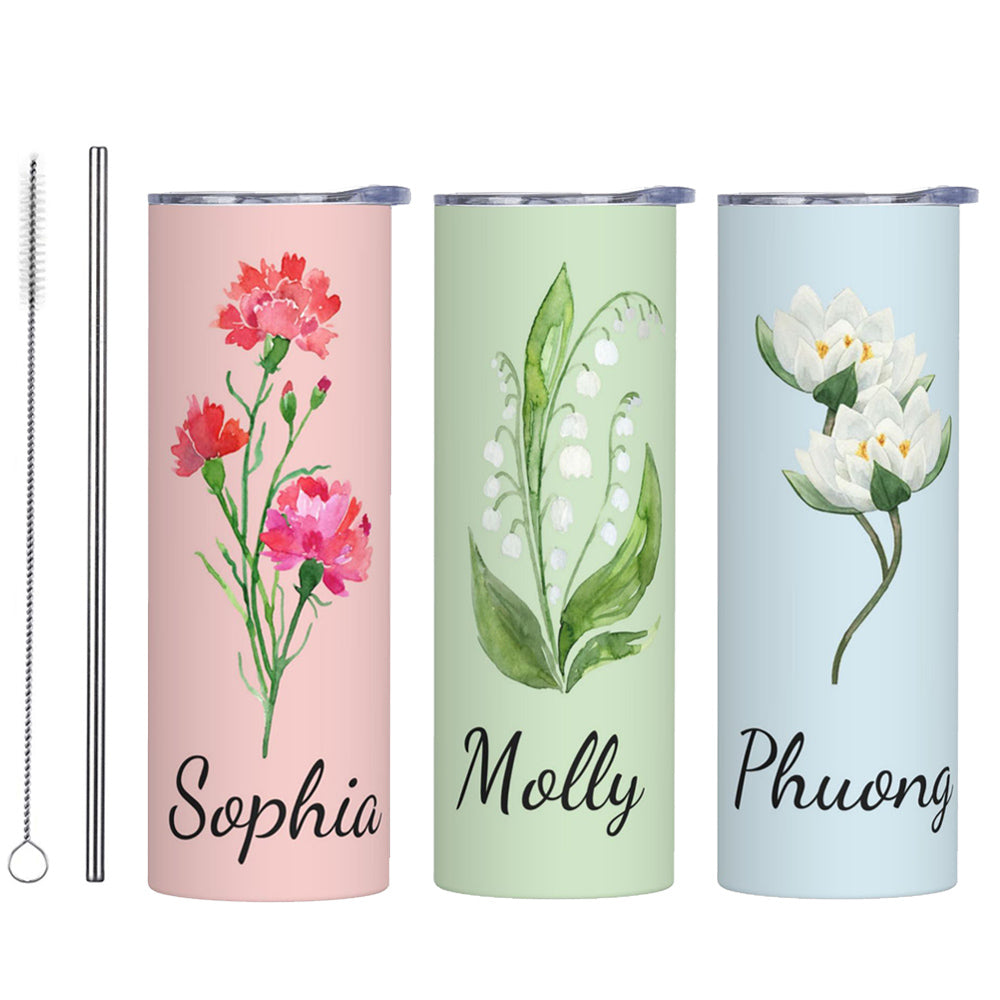 | Style | Custom Birth Flower & Name Watercolor Tumbler |
