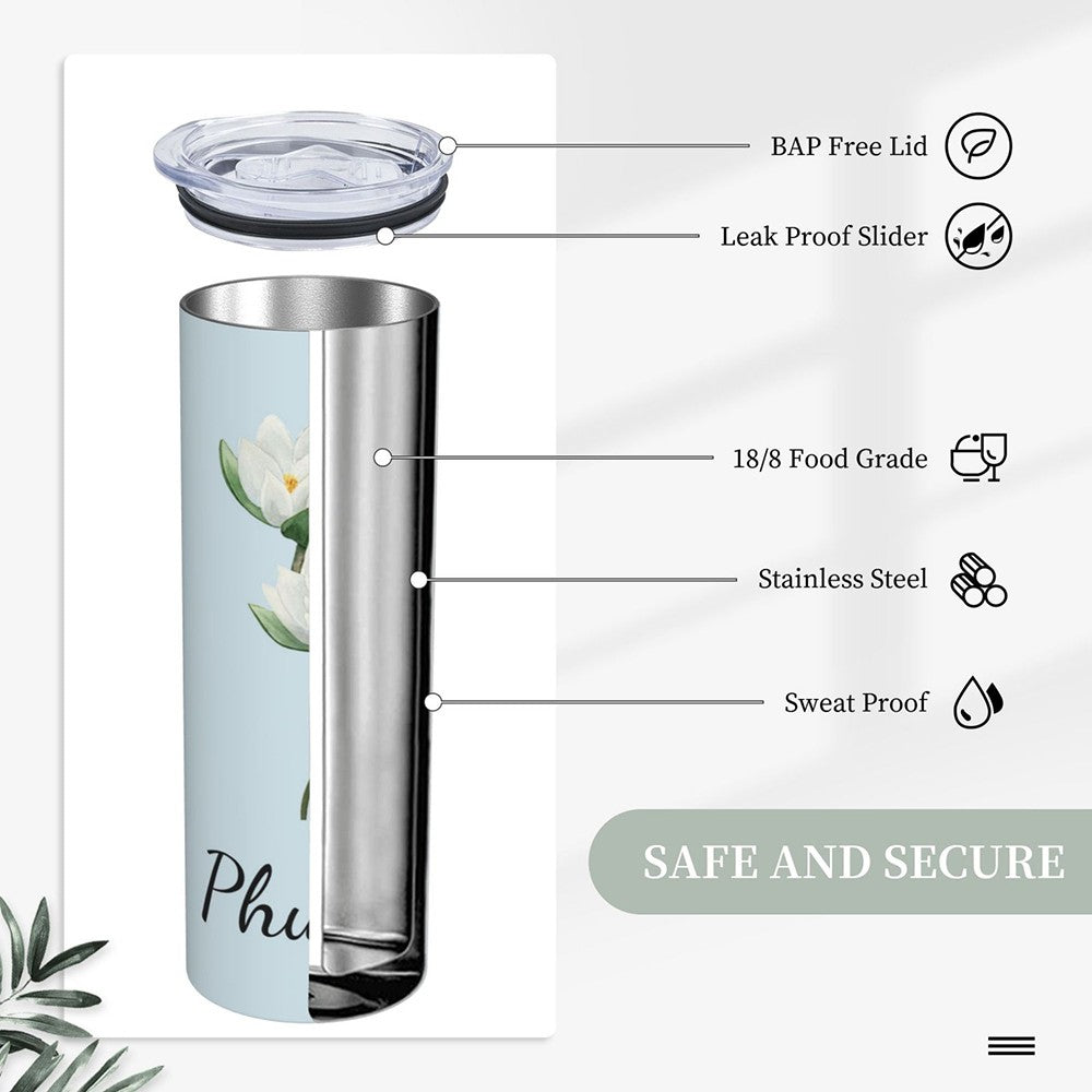 Personalized Birth Flower and Name - This tumbler allows you to select the birth flower corresponding to the recipient's birth month and add their name. This personalized feature adds a unique and meaningful touch to the tumbler.