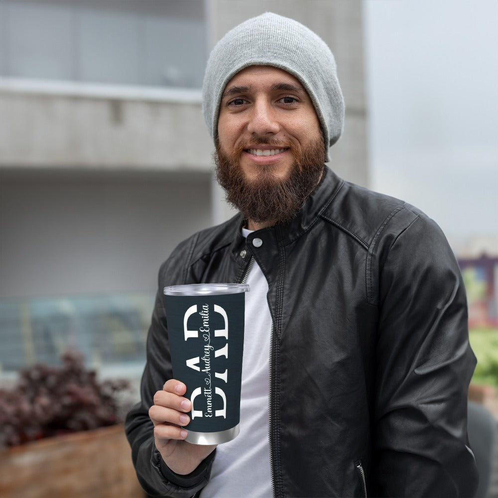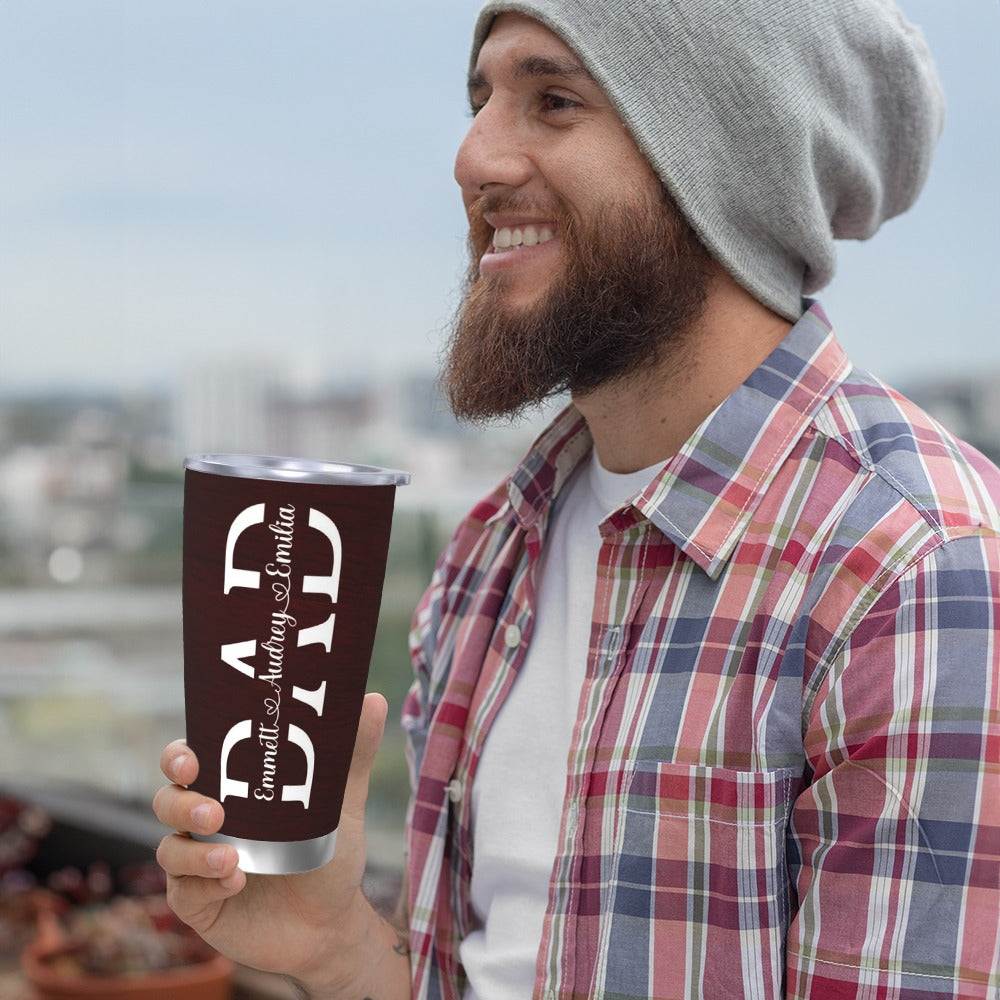 Custom Tumbler - This stainless steel travel mug can be customized with kid's names of your choice, making it a personalized and thoughtful gift for Dad, Grandpa, or any special person in your life.