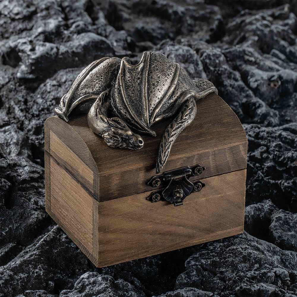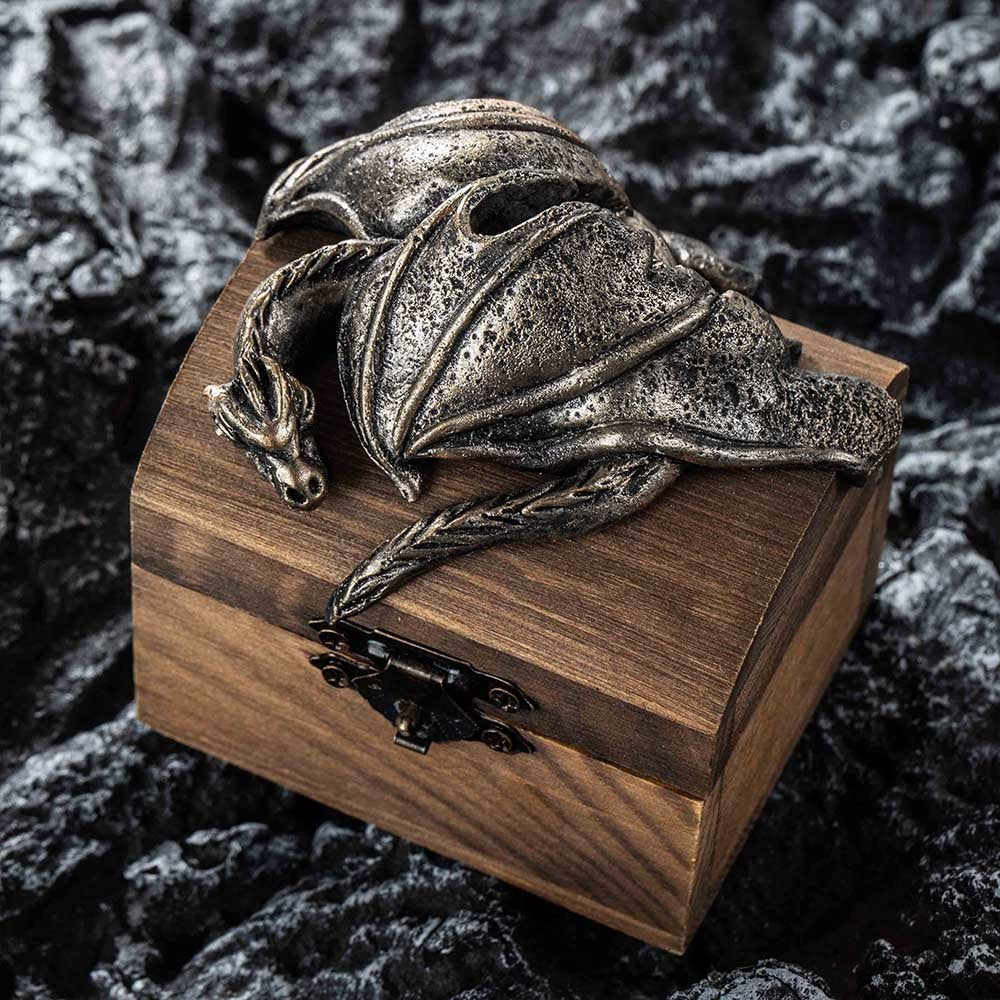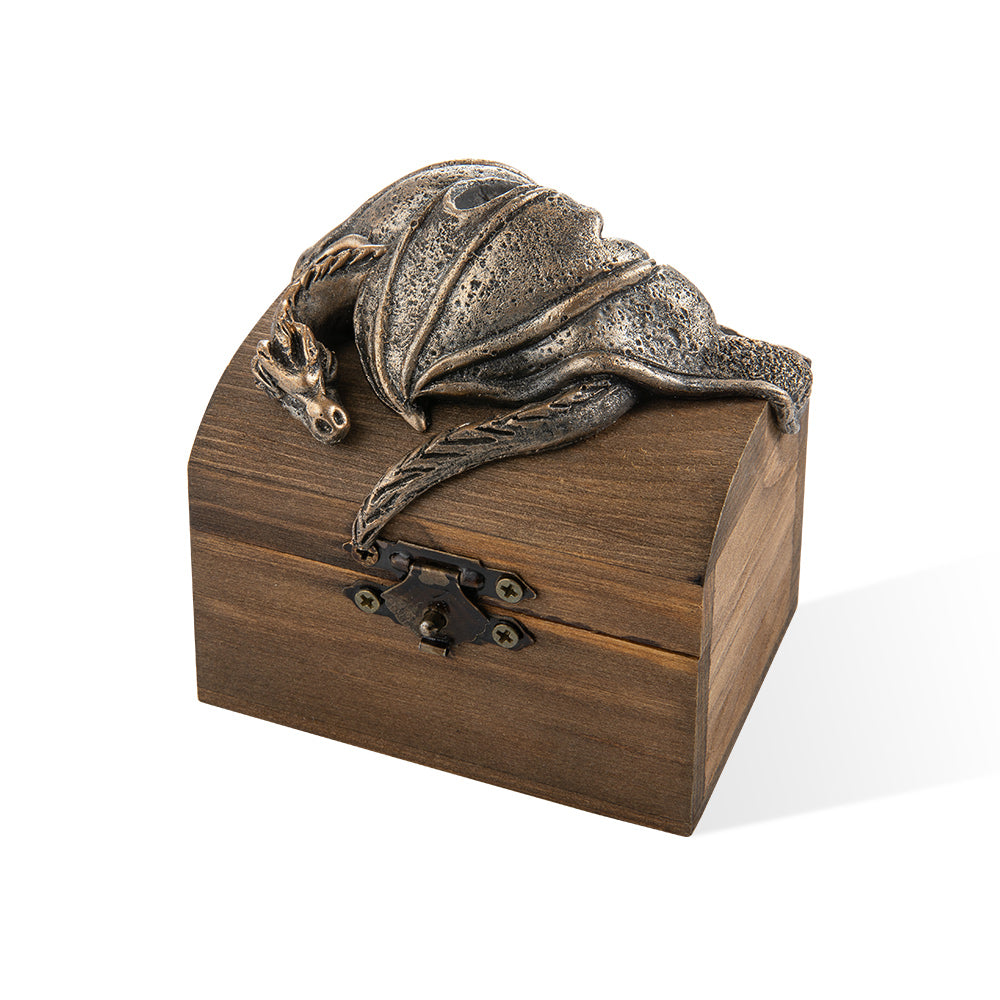 Personalized Ring Box - A treasure chest-shaped ring box with a dragon nestled in it. From the appearance, it looks like a giant dragon guarding the treasure chest. The contents of this treasure chest are very precious. You can personalize the name of the recipient on the treasure chest and give this unique gift to your precious one!