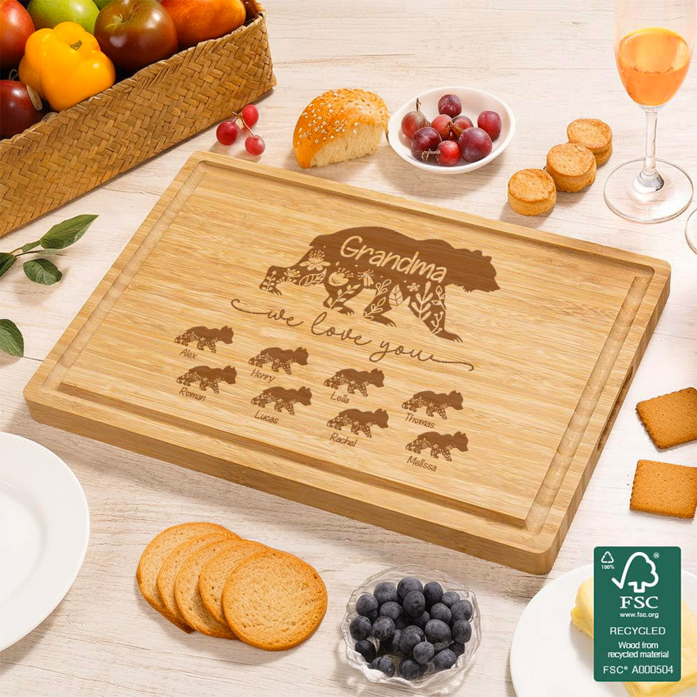 Personalized Engraving - Customize this cutting board with mama's title and little bears' names, creating a meaningful keepsake for moms, grandmas, or anyone who values family bonds. The personalized detail adds sentimental value to this functional kitchen accessory.