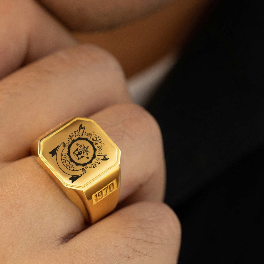 Custom Engraved Signet Ring, Square Ring, Graduation/Father's Day Gift, Brass/Sliver Ring for Graduates/Men/Family
