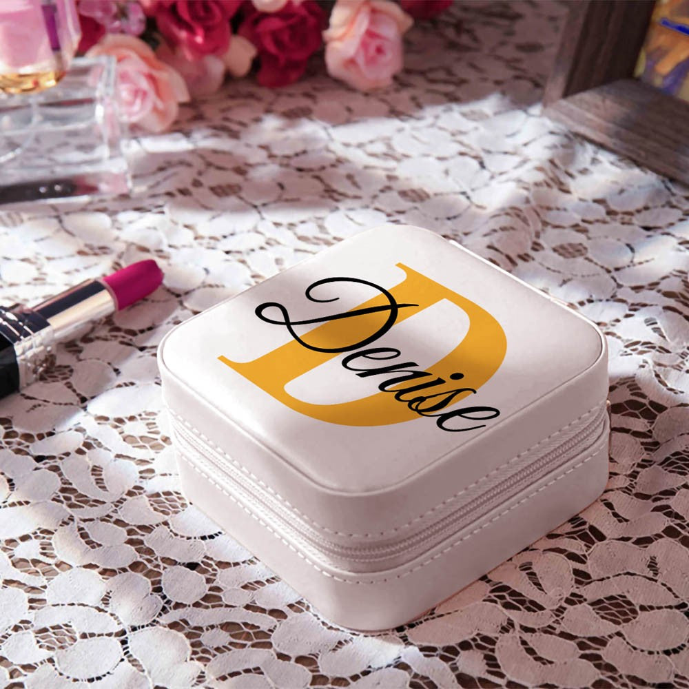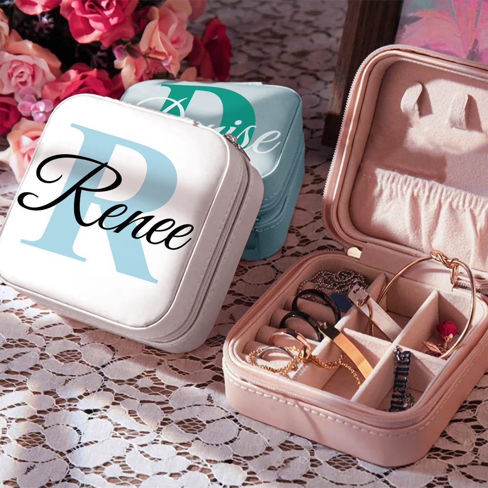 Custom Jewelry Box with Name & Initial, Portable Jewelry Box, Vegan Leather Jewelry Travel Case Organizer Box, Gift for Women