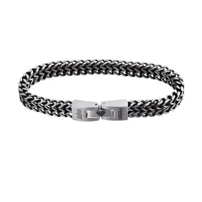 Custom Men's Stainless Steel Interlocking Bracelet with Engraved Names or Maps, Long Distance Relationship Gift for Him
