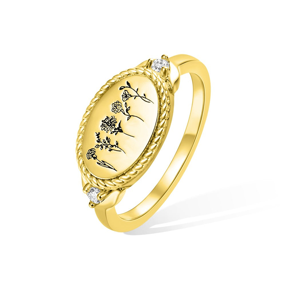 Birth Month Personalization - Customize the ring with the birth flowers corresponding to the birth months of your choice, making it a truly personalized and sentimental gift.
