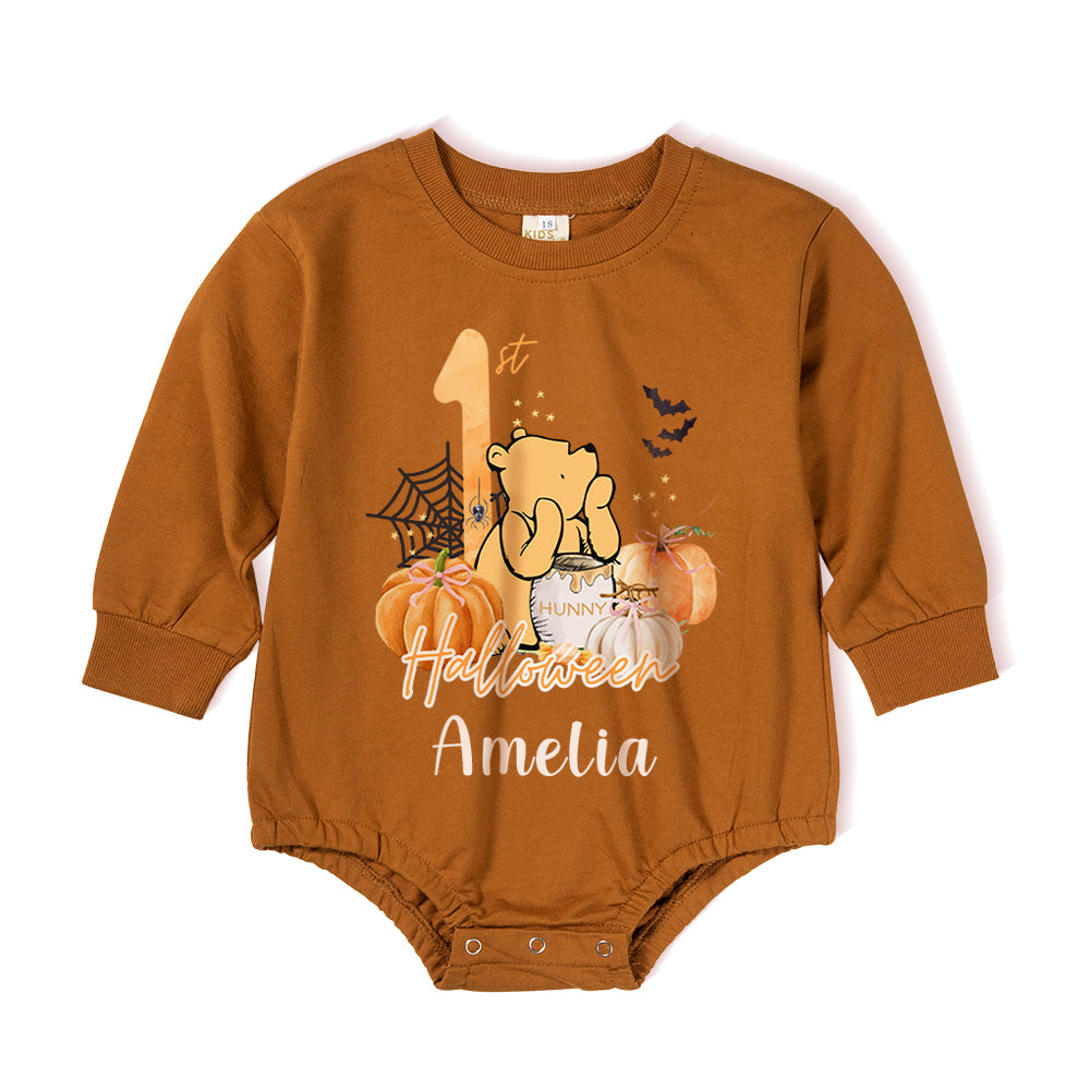 Custom Name 1st Halloween Babysuit, 100% Cotton Bear Pumpkin Unisex Long Sleeve Baby Onesie, Halloween Outfit, Halloween Gift for Newborns/Infants
