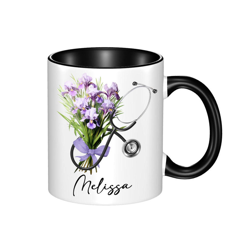 | Style | Custom Name & Birth Flower Bow Stethoscope Design Mug |