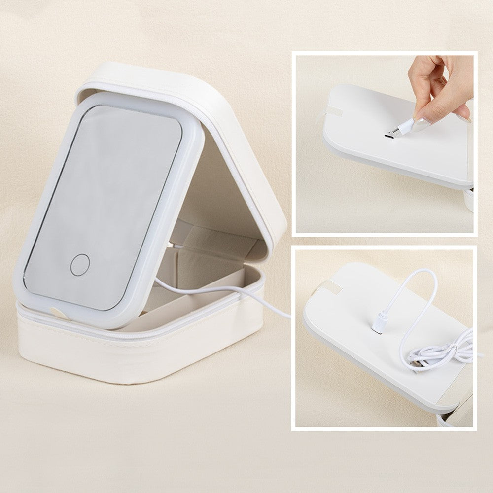 Makeup Essential - Equipped with a built-in LED mirror offering three adjustable lighting modes (warm, cool, and natural light), this box ensures flawless makeup application while securely stores your jewelry and makeup essentials wherever you go. The rechargeable LED light, powered by the included charging cable, lasts approximately a week on a single charge.