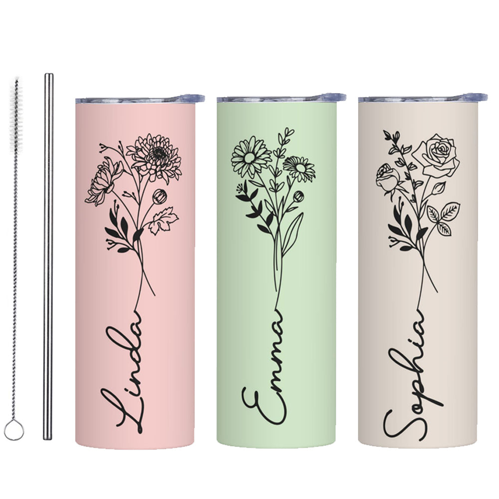 Personalized Birth Flower Design - Each tumbler features a unique birth flower design customized with the recipient's name, adding a personal touch to the gift.