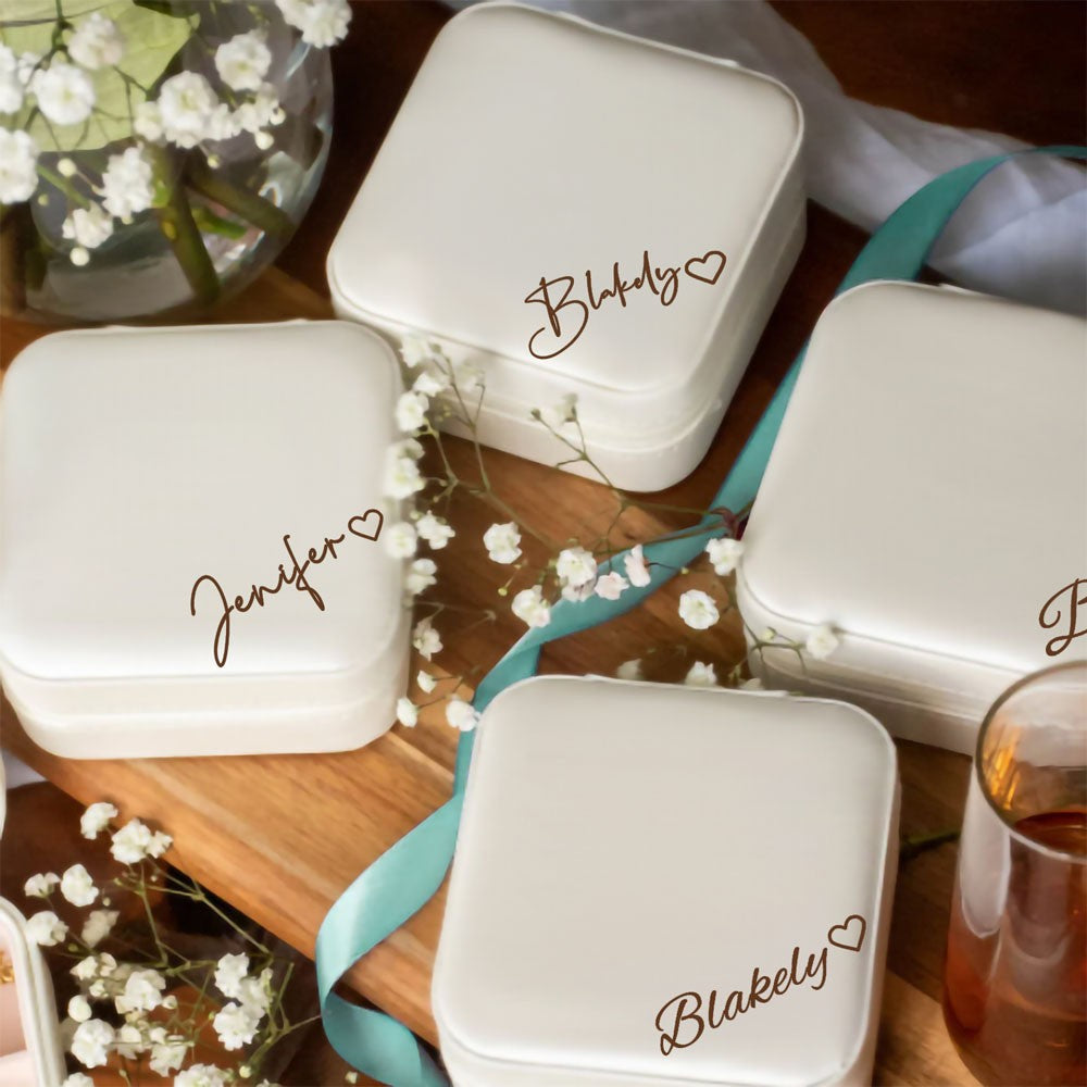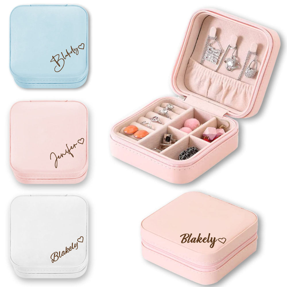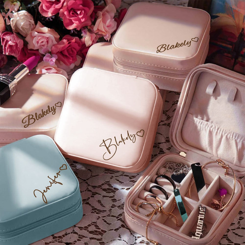 Custom Name Heart Jewelry Box, Vegan Leather Jewelry Travel Case Organizer Box, Birthday/Wedding/Bachelorette Party Gift for Mother/Wife/Bridesmaids