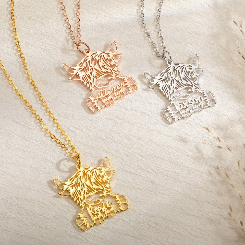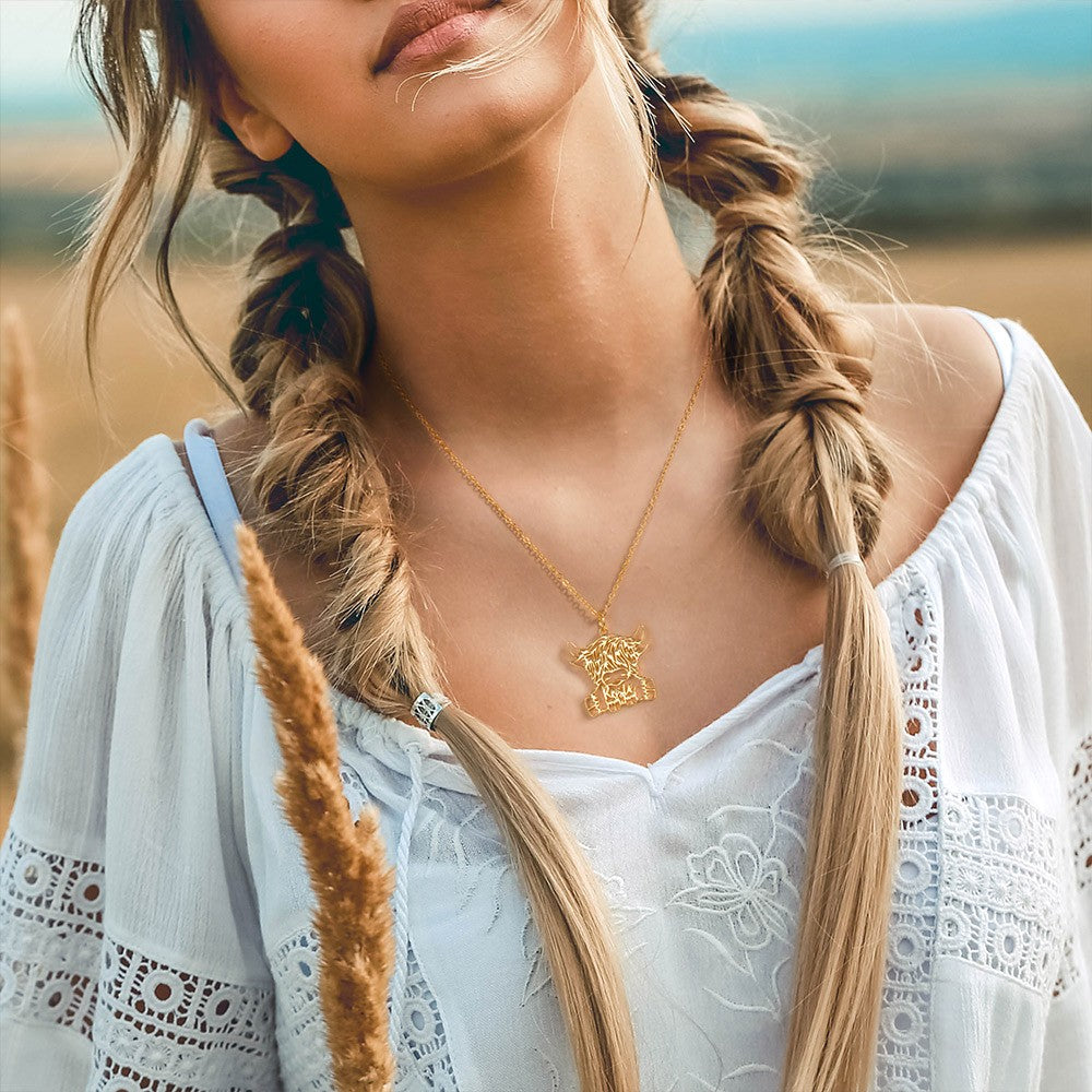 Highland Cow Charm - This necklace is inspired by the Highland cow. The Highland Ox symbolizes friendliness, integrity, hard work, and wealth, which give this necklace an eye-catching element. The selection of high-quality materials ensures that this necklace is beautiful and durable, maintaining its luster and quality for a long time.