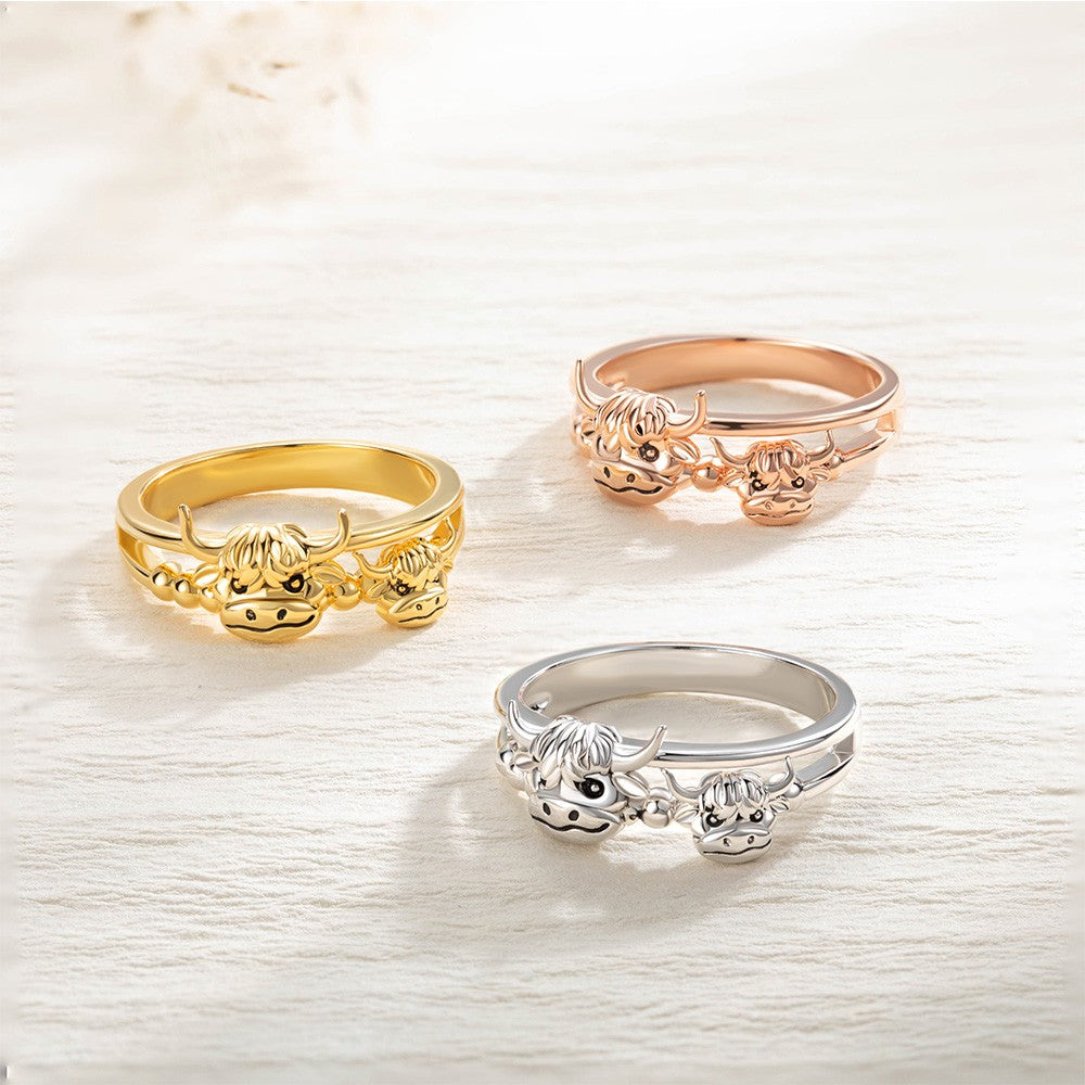 Highland Cow Charm - This ring is inspired by the Highland Cow. The Highland Ox symbolizes friendliness, integrity, hard work, and wealth. This ring also specifically incorporates the design of large highland cattle and small highland cattle, which have the beautiful meaning of accompanying each other. The selection of high-quality materials ensures that this ring is beautiful and durable.