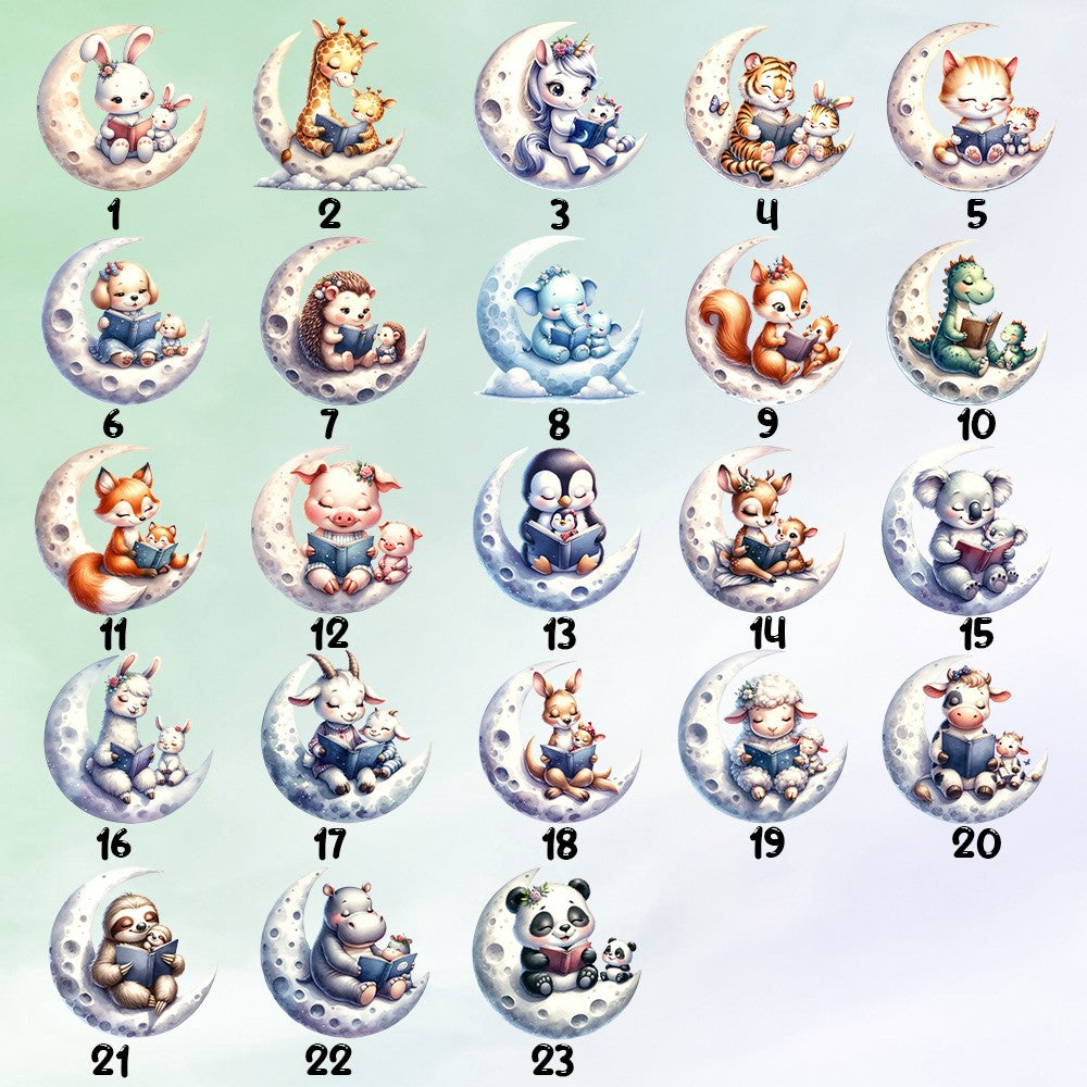 Whimsical Design - The set features an enchanting design of adorable animals reading books together on the moon, symbolizing the magical bond between mother and child with twenty-three animal pattern options. The dreamy and playful artwork is perfect for creating unforgettable memories.