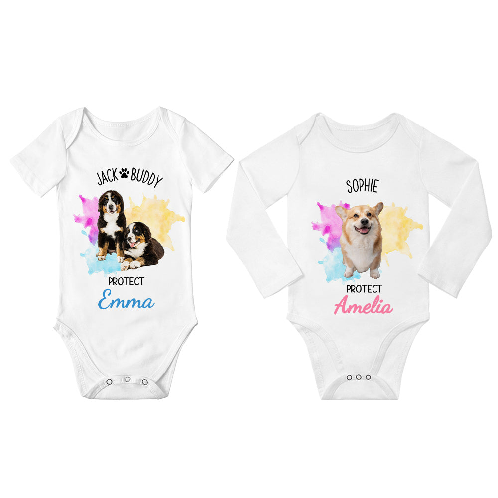 Custom Name Pet Photo Baby Onesies, Baby Name & Pet Picture Romper, Cotton Bodysuit, Baby Shower/Birthday Gift for Infant/Newborn with Furry Family