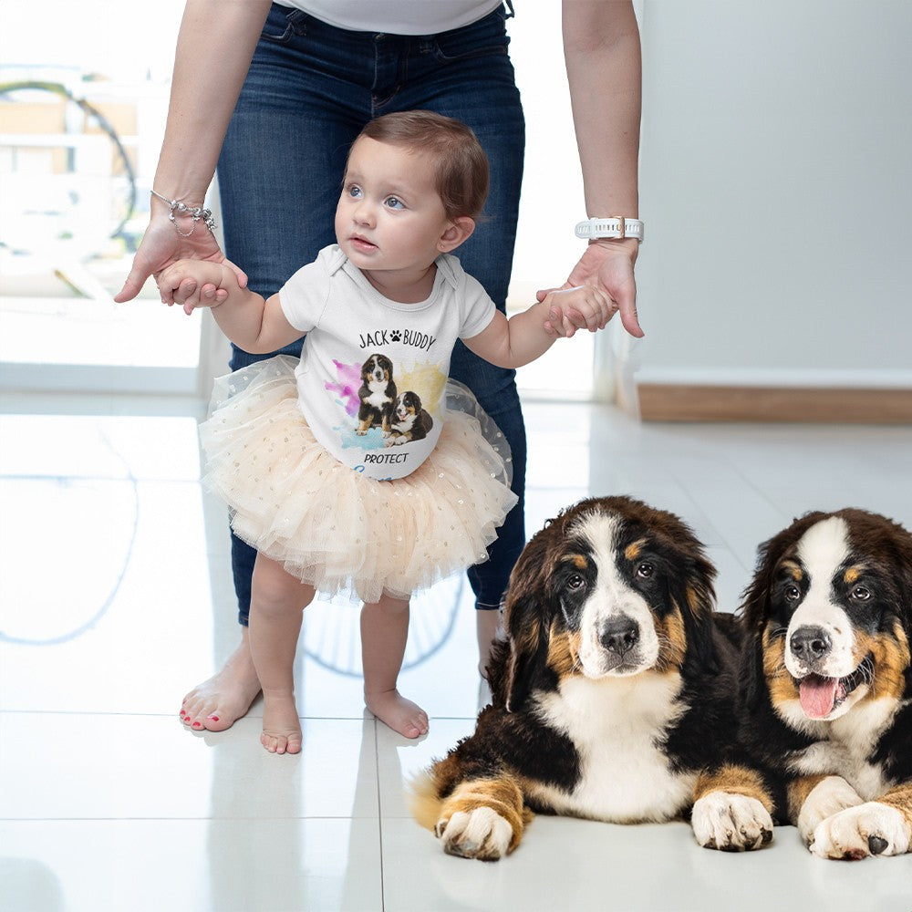 Custom Design - Our baby onesies allow for customization with both a name and pet(s) photo. This feature adds a personal touch and makes it a unique and special onesie for infants and newborns.
