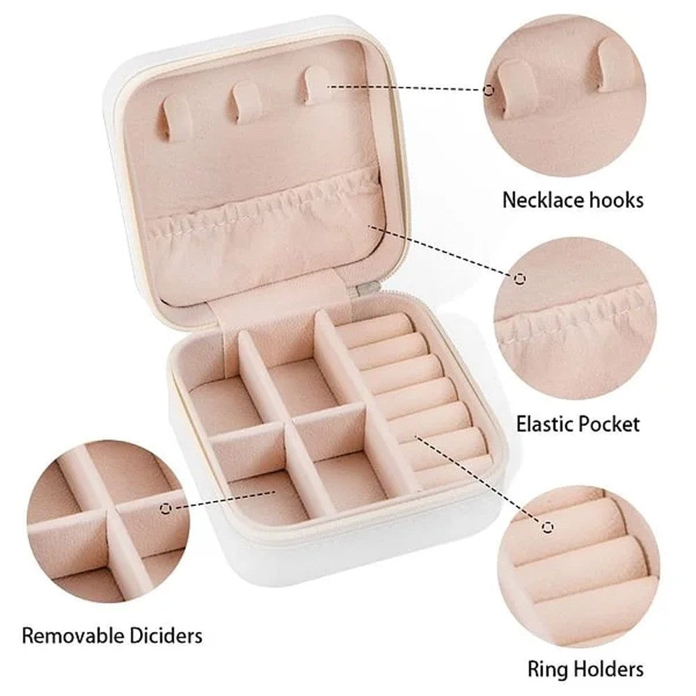Multi-Compartment Storage - Designed with multiple compartments to organize rings, necklaces, earrings, and more, this compact jewelry case is ideal for travel or everyday use. Its secure zipper closure keeps your accessories safe and organized.