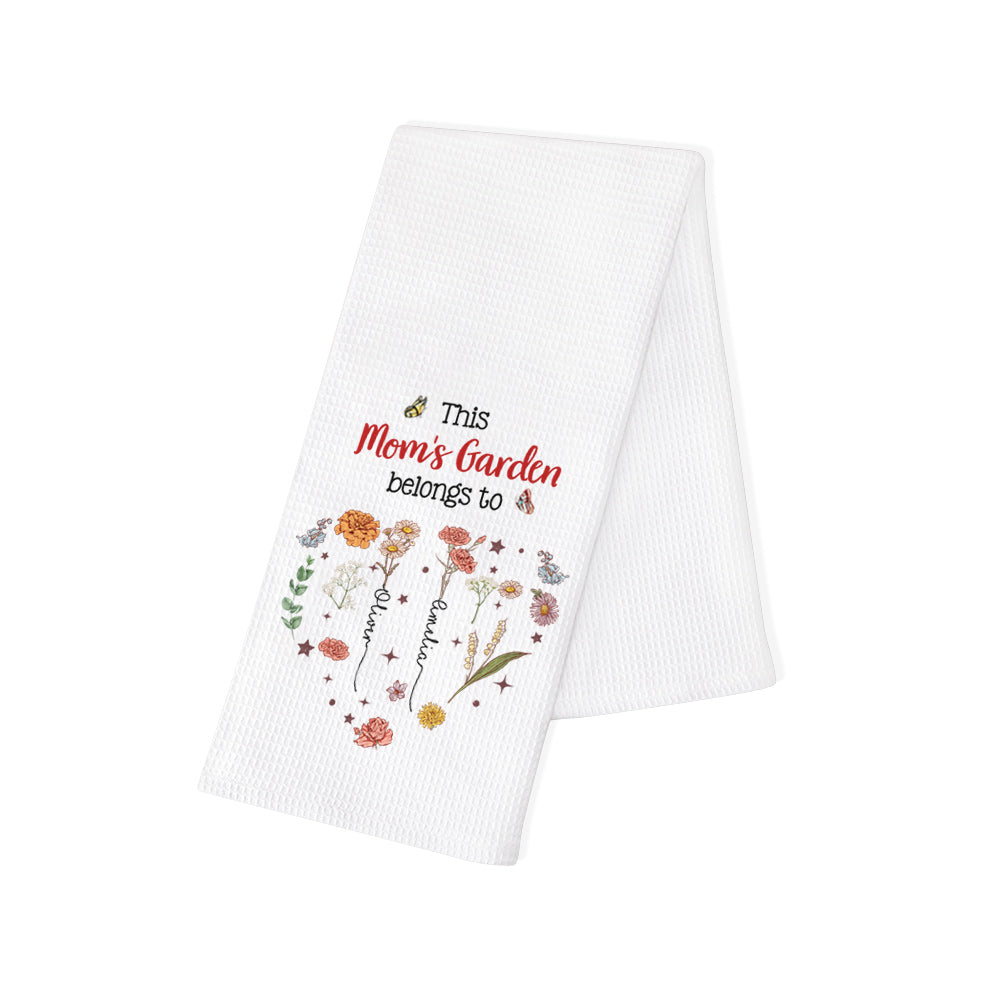 Custom Names & Birth Flowers - Personalize the towel with a title, names of family members and their corresponding birth flowers, creating a sentimental keepsake that celebrates family bonds. Each custom detail is carefully printed for a heartfelt touch.