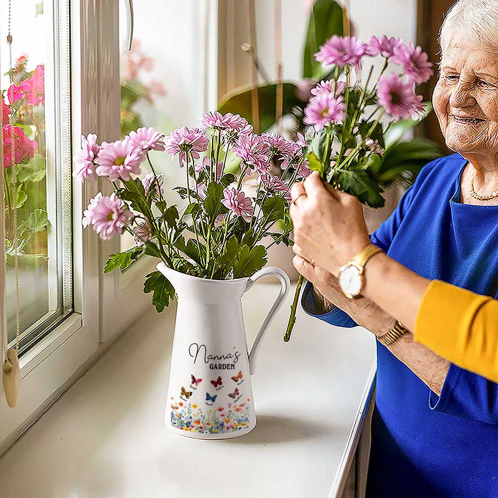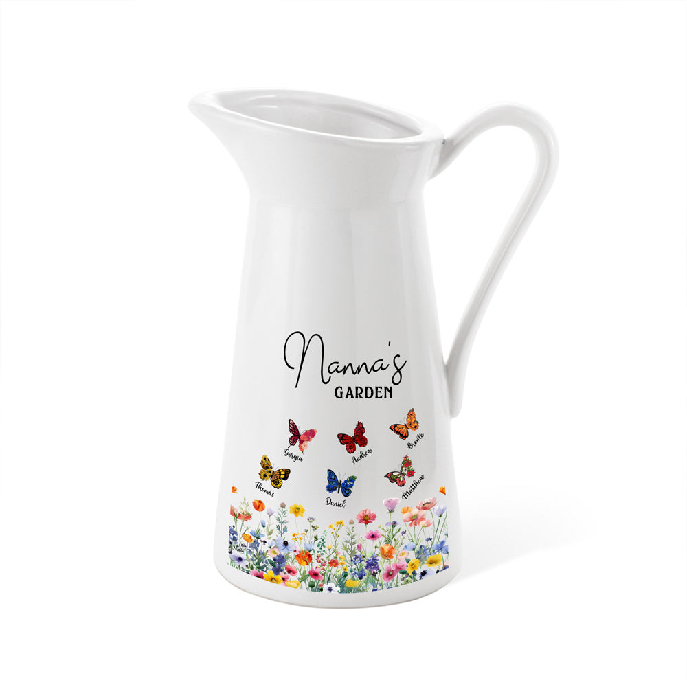 Custom Names & Birth Month Butterflies of Grandma's Garden Vase, Women's Ceramic Mug Vase, Home Decor, Birthday/Mother's Day Gift for Her/Mom/Grandma