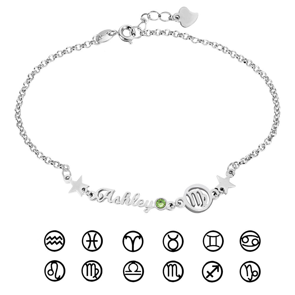This bracelet is a combination of twelve constellations, name and birthstone.