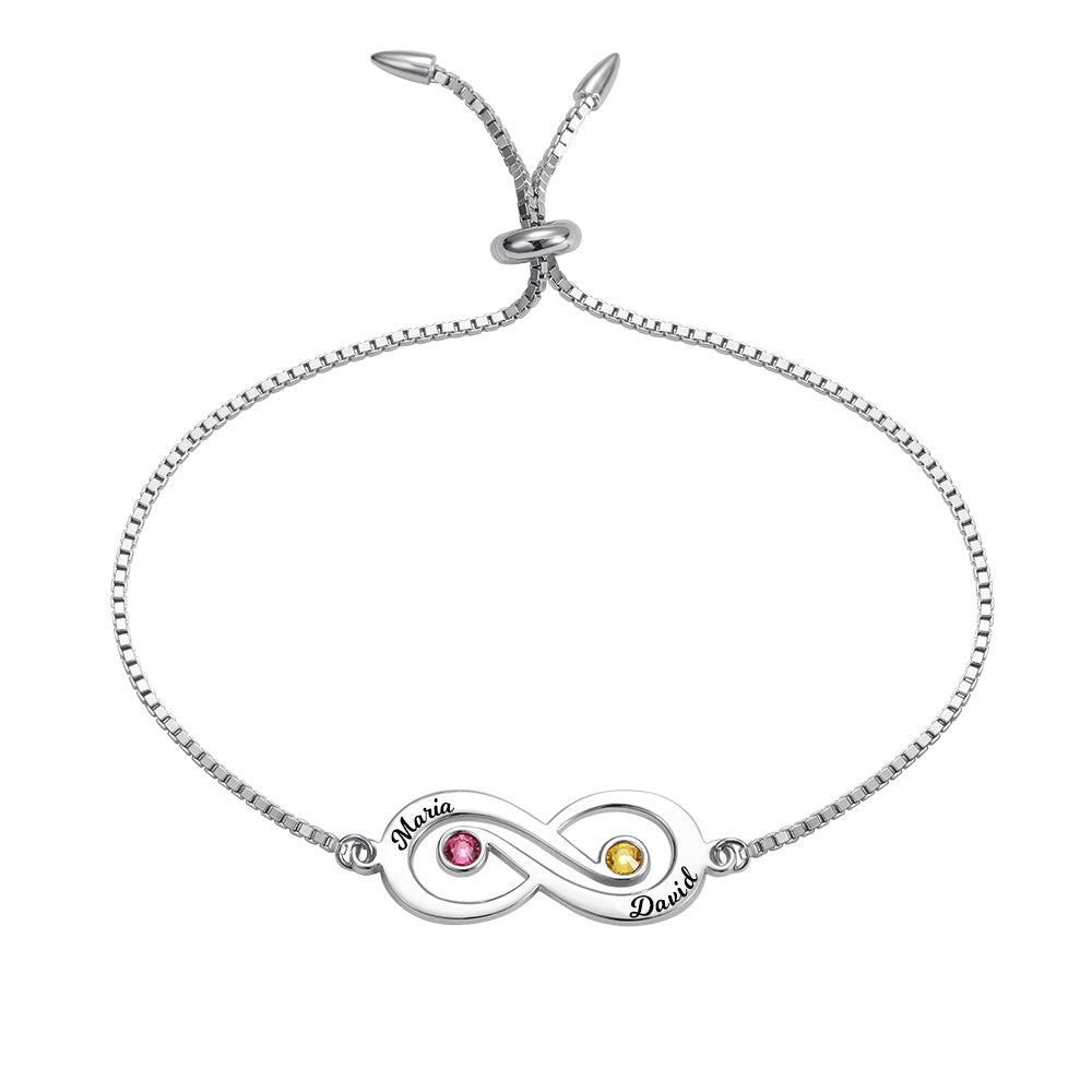 Customized Infinity Name Silver Bracelet with Birthstone
