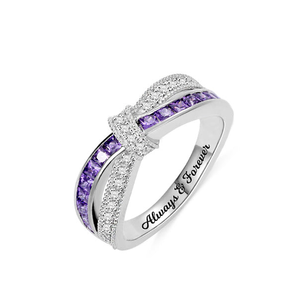 A sparkling cross-over ring for her – polished to give out a brilliant shine with a remarkable elegance with a shimmer to it, our Engraved Cross-Over Birthstones Silver Ring is the perfect gift for your loving girlfriend or wife.