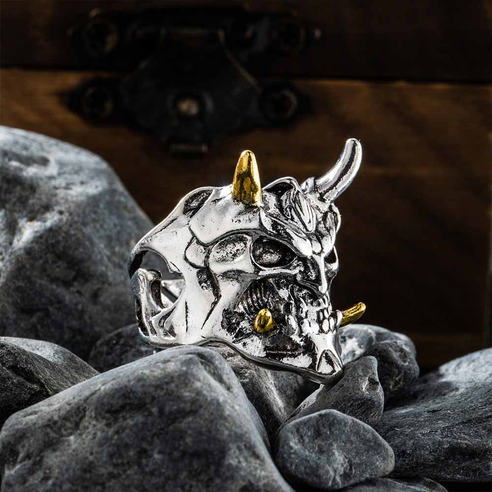 Hannya Ghost Ring, Oni Mask Ghost Ring, Demon Ring, Gothic Ring, Vintage Ring, Cool Rings for Men/Husband