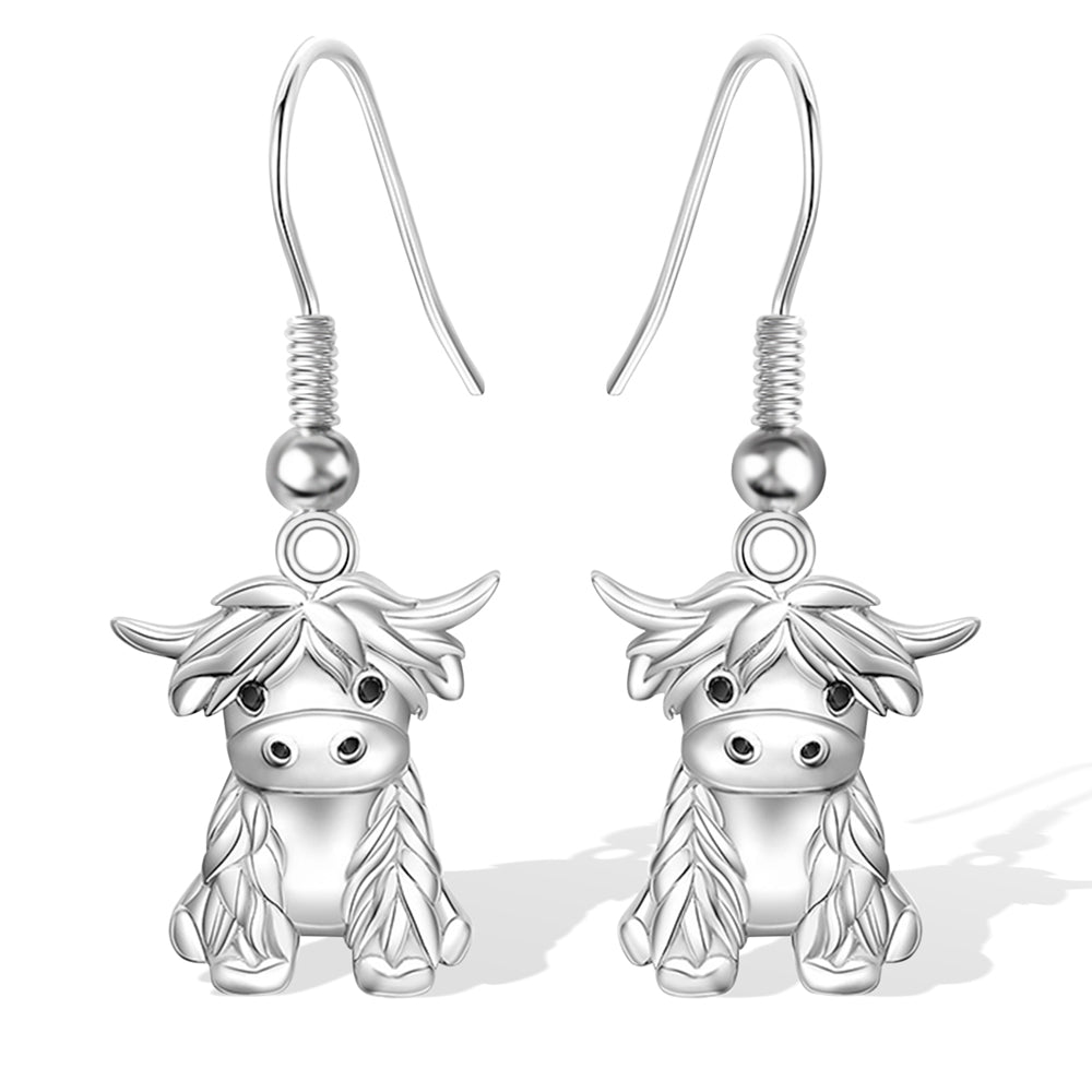 Highland Cow Dangle Earrings, Sterling Silver/Brass Animal Earrings, Women's Jewelry, Christmas/Birthday/Anniversary Gifts for Women/Girls/Cow Lovers