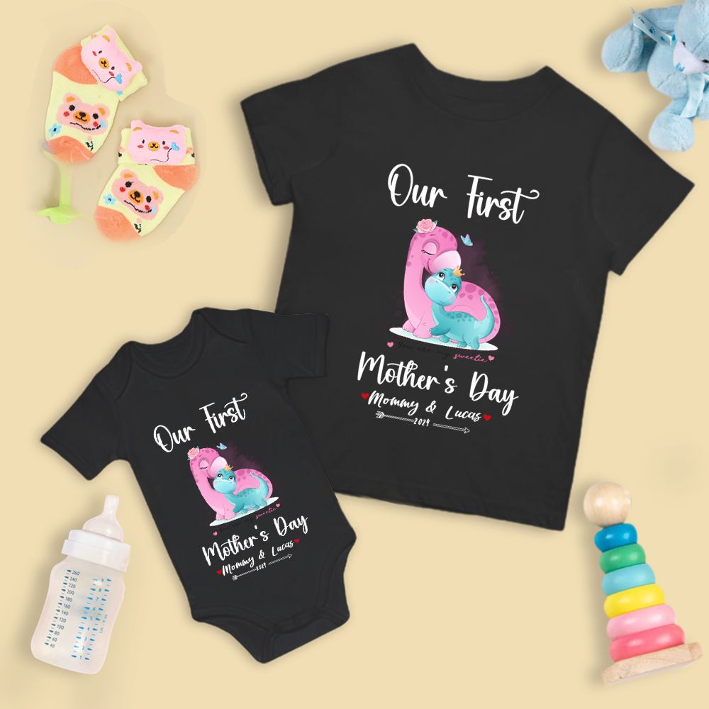 Our First Mother's Day Mom and Baby Set/Matching Shirt, Mummy and Baby Gift, Mama Baby Dinosaurs, T-shirt Bodysuit Romper Babygrow Vest Set, New Mom Gift, Mother's Day Gift