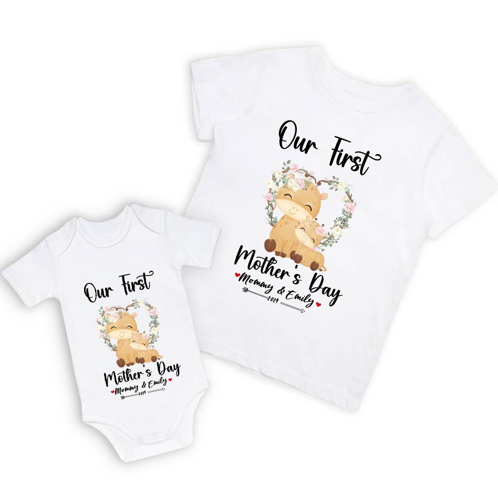 Our First Mother's Day Mom and Baby Set/Matching Shirt, Mummy and Baby Gift, Mama Baby Giraffes, T-shirt Bodysuit Romper Babygrow Vest Set, New Mom Gift, Mother's Day Gift