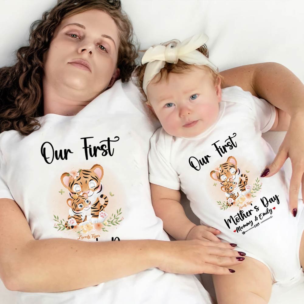 Our First Mother's Day Mom and Baby Set/Matching Shirt, Mummy and Baby Gift, Mama Baby Tigers, T-shirt Bodysuit Romper Babygrow Vest Set, New Mom Gift, Mother's Day Gift