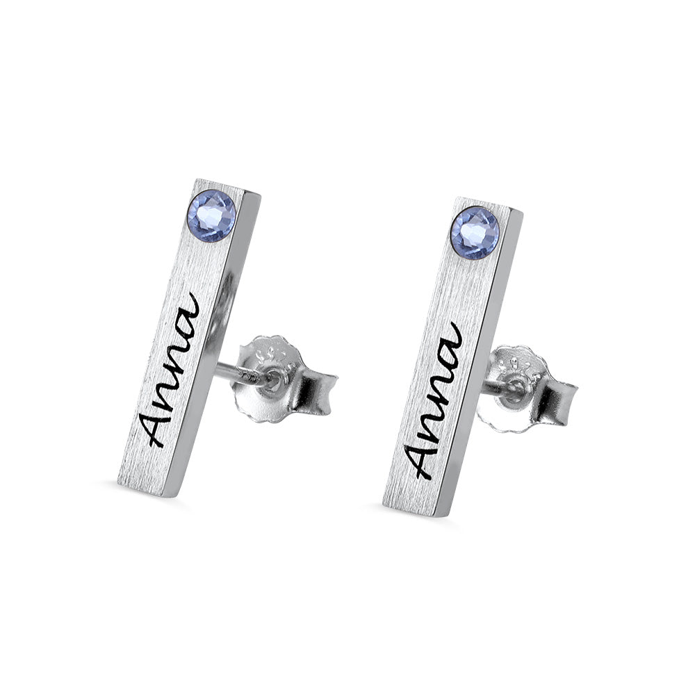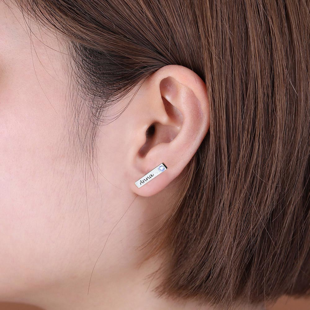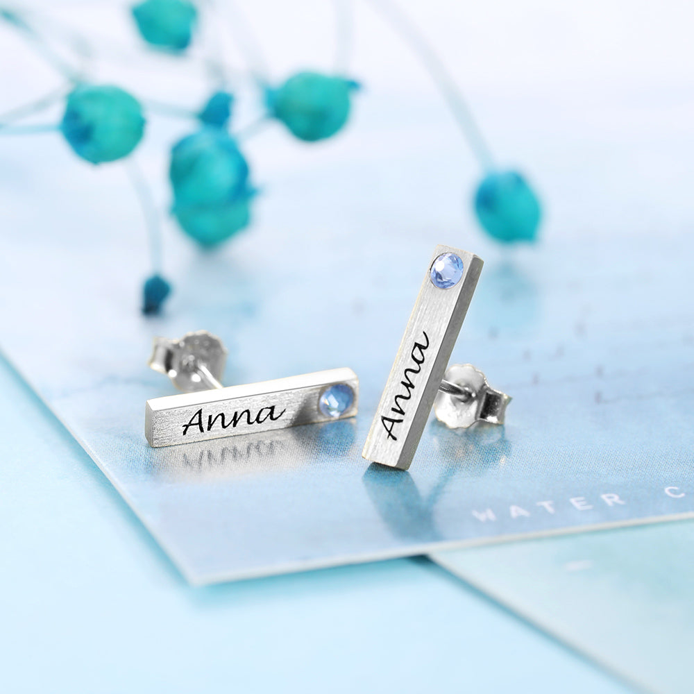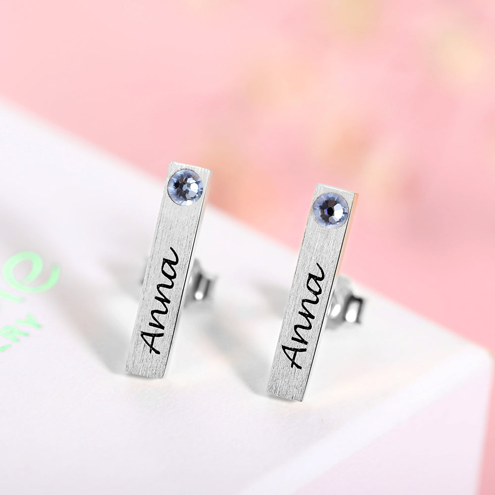 Dainty bar-shaped earrings with minimalist style. With custom engraving and birthstone of your choice, this jewelry is simple but unique, a great pleasure for girls to lighten their look and mood in a beautiful morning. Finely crafted from sterling silver, available in three colors of silver, gold and rose gold. Now personalized it with your options!