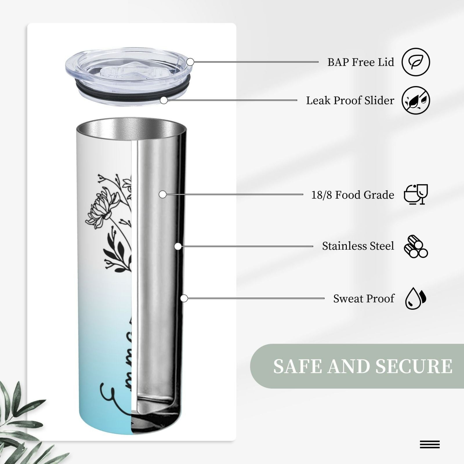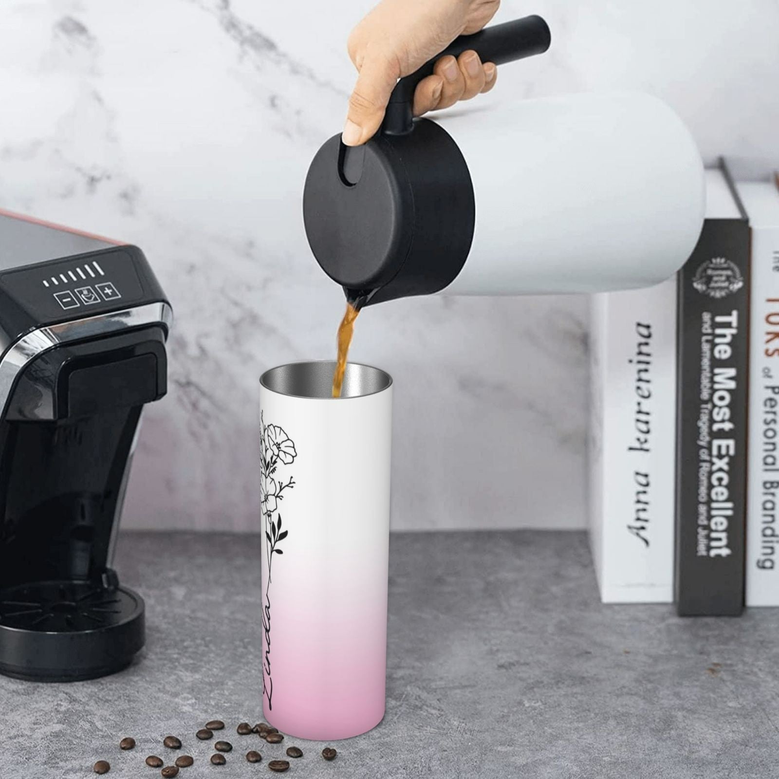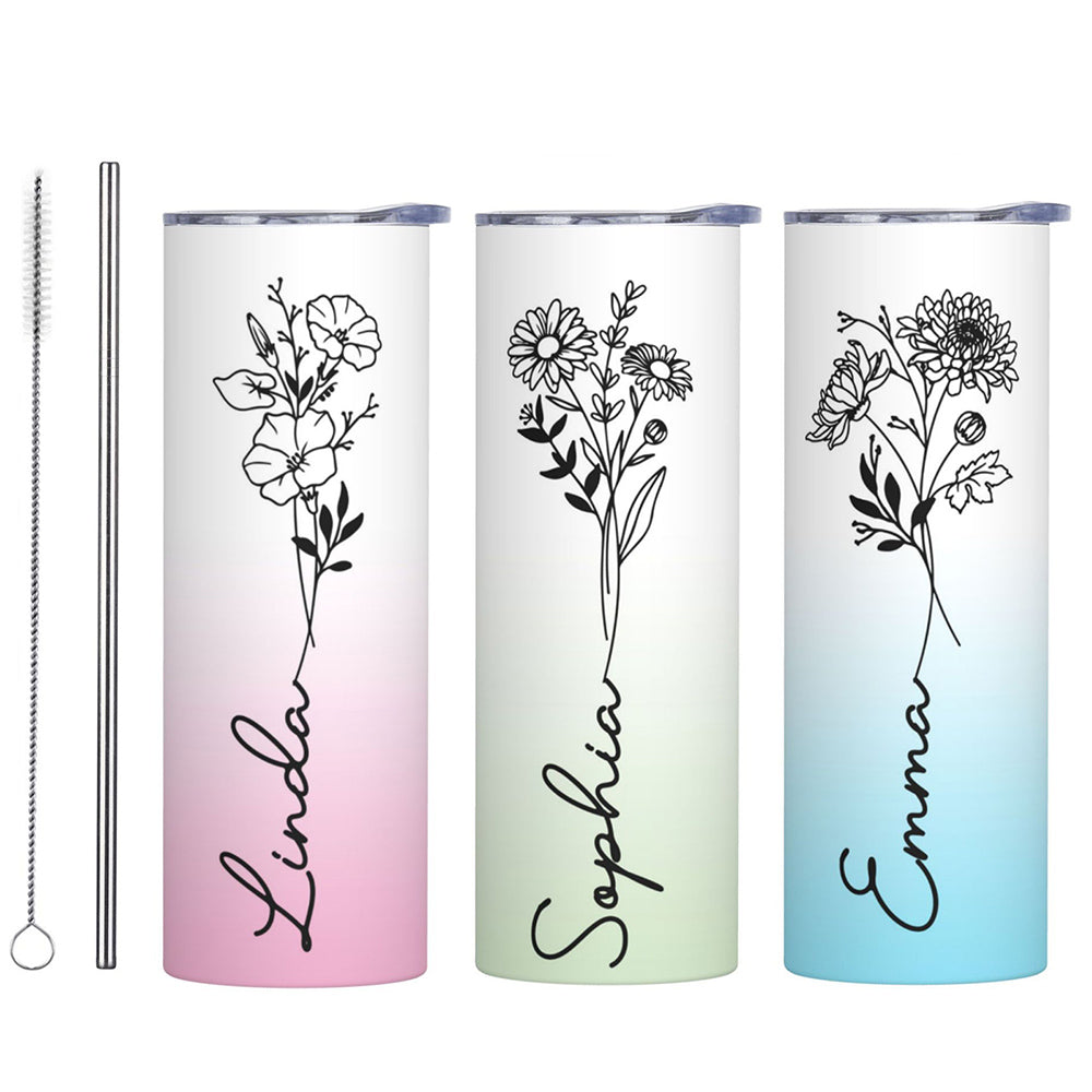 Personalized Birth Flower Name Gradient Skinny Tumbler, 20oz Floral Travel Tumbler with Straw & Lid, Stainless Steel Tumbler, Gift for Friend/Sister