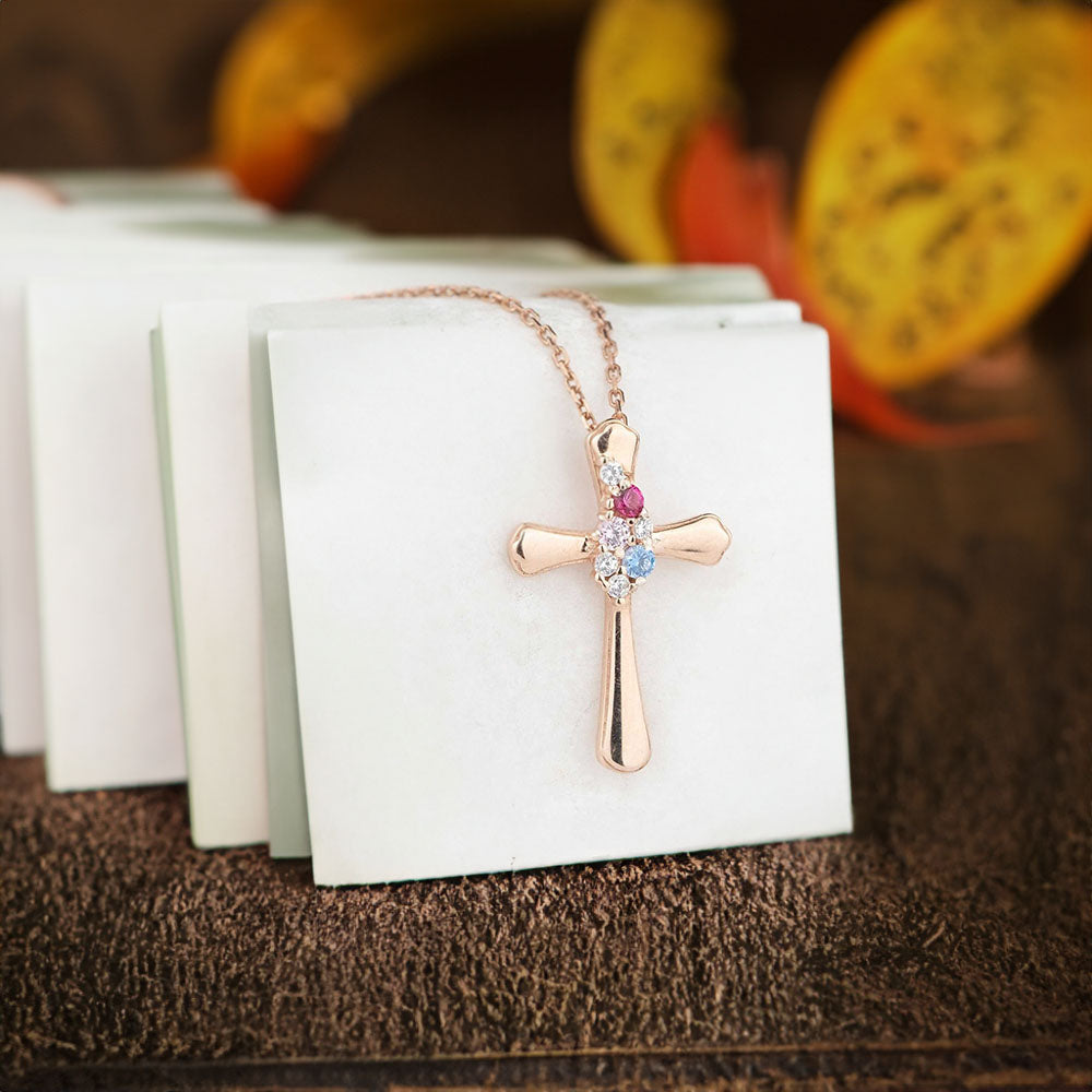Personalized Birthstone - This cross necklace features a birthstone pendant that can be personalized with the birthstone of your choice. The birthstone adds a special and meaningful touch to the necklace, representing the recipient's birth month or a significant date.