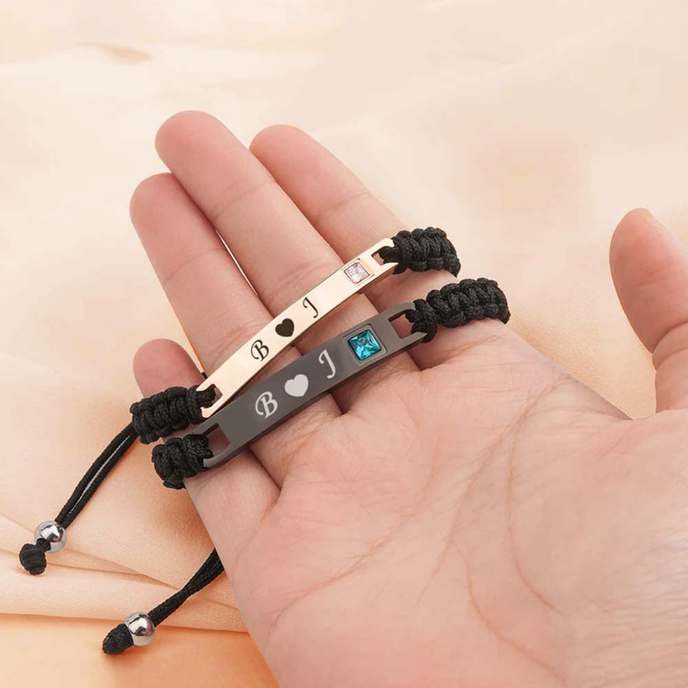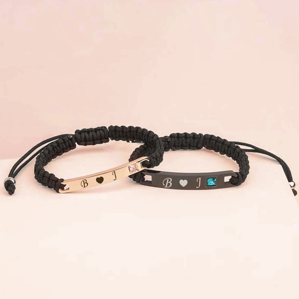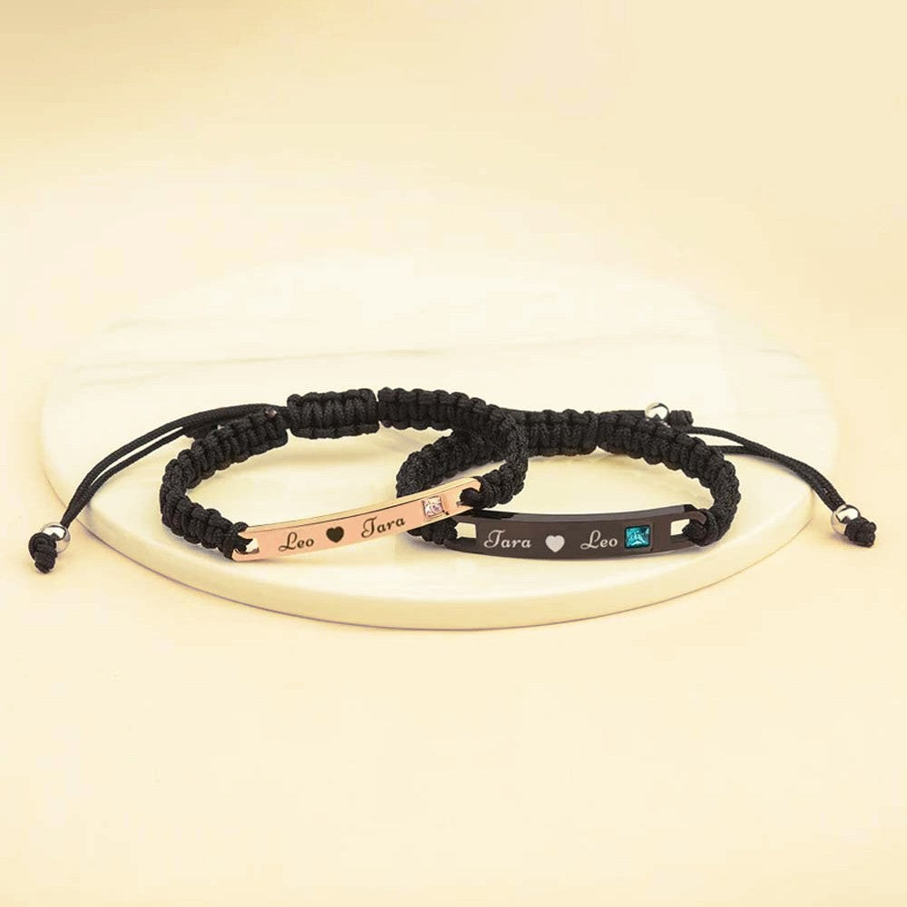 Personalized Birthstone & Name Couple Bracelet Set, Woven Bracelet, Matching Bracelets for Couples, Valentine's Day/Anniversary Gift for Couples