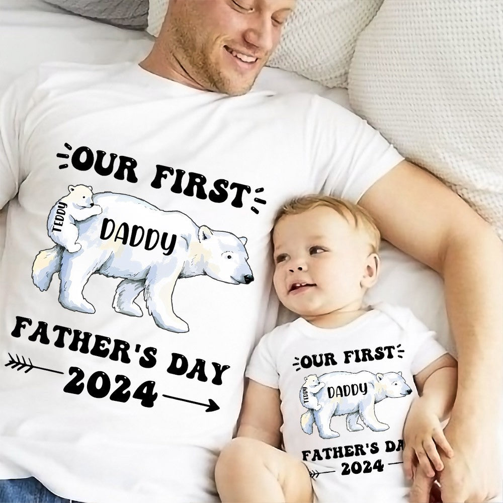 Personalized Daddy Polar Bear & Baby Polar Bear T-Shirt, Our First Father's Day Shirt, Polar Bear Shirts, Cotton Matching Shirt, Gift for Dad/Newborn
