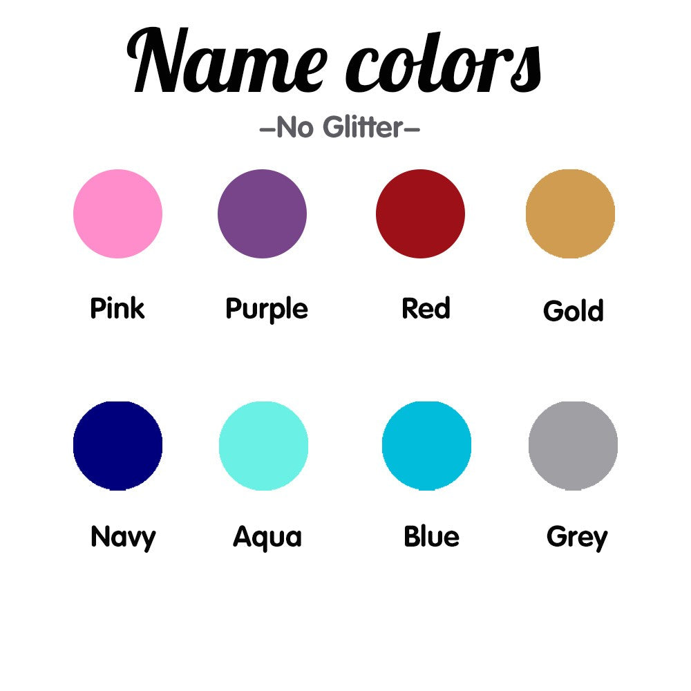 Customization - Personalization is finished with heat transfer vinyl. You can choose the color of name entered and your favorite dance silhouette. Name colors are available in glitter and non-glitter colors (7 glitter colors, 8 non-glitter colors).
