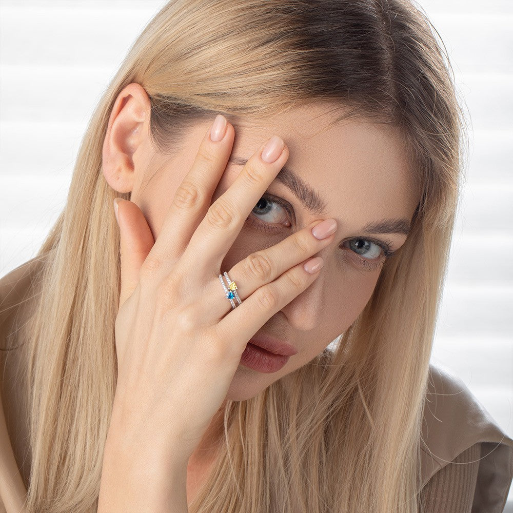 Personalized Double Heart Birthstone& Double Band Ring: This double band ring is customizable with two heart-shaped birthstones of your choice, making it a unique and meaningful piece of jewelry. You can choose birthstones representing your own birth month or the birth months of loved ones such as children or grandchildren.