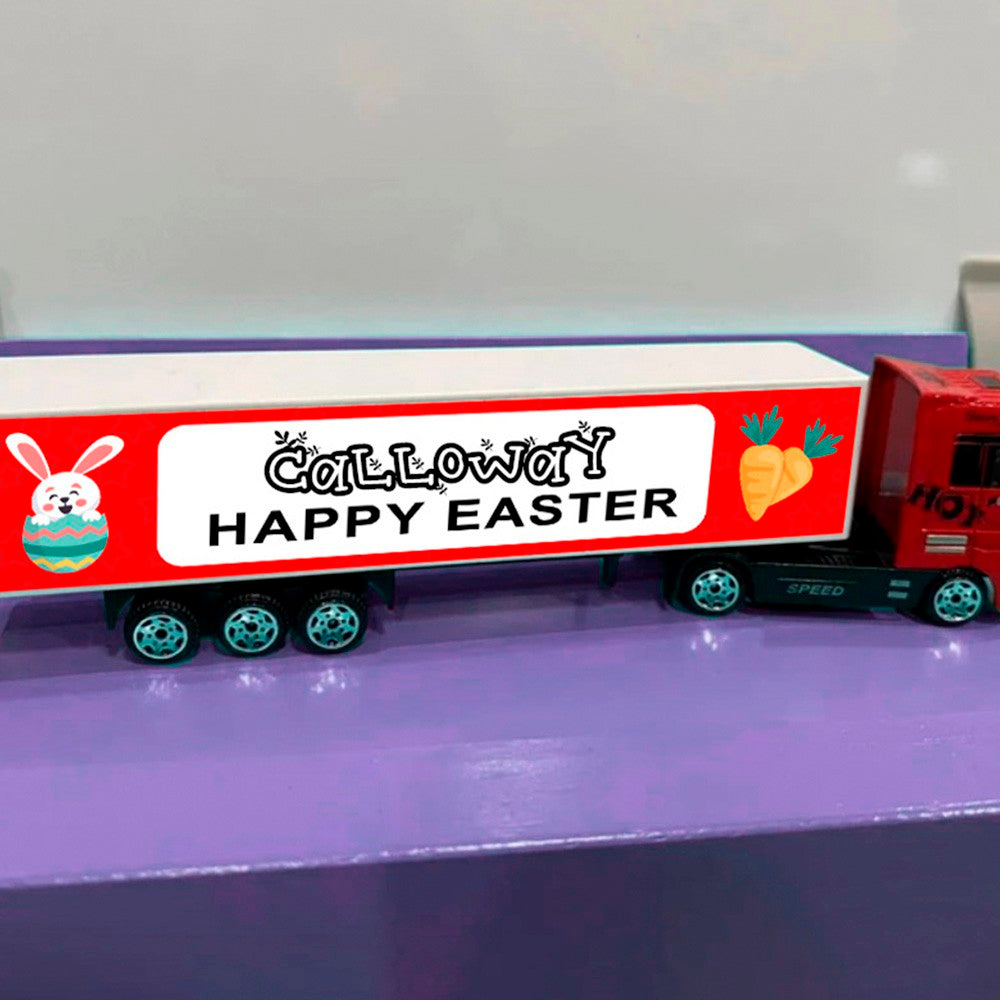 Personalized Name Toy Trucks- These Easter kid toy trucks are the perfect gift for kids as they offer a customized touch to their playtime. Each truck can be personalized with the child's name, making them feel special and appreciated. This added personalization turns these toys into unique keepsakes that the child can cherish for years to come.