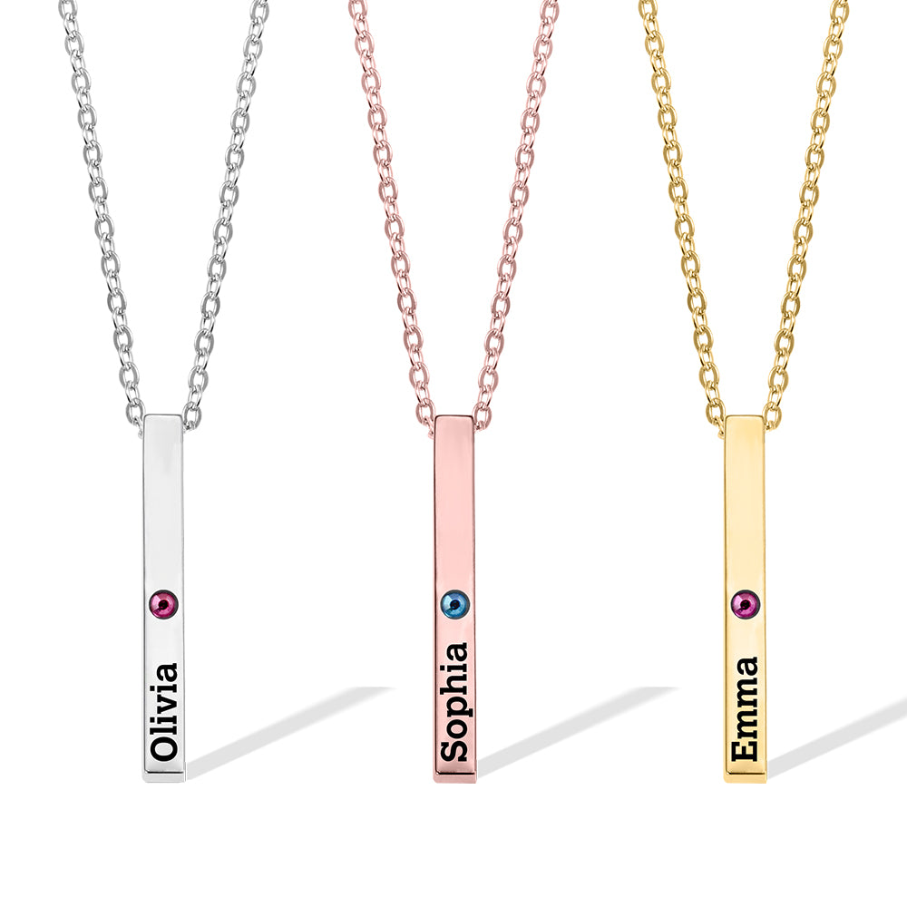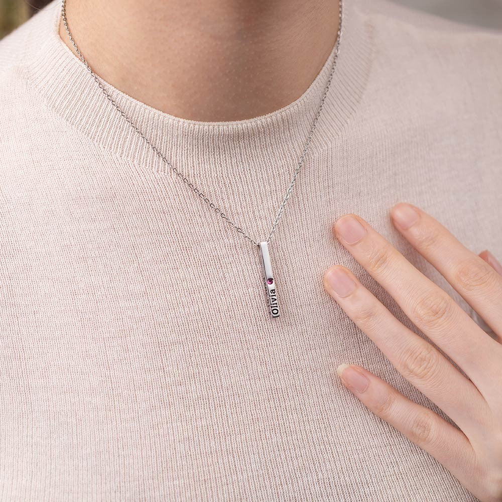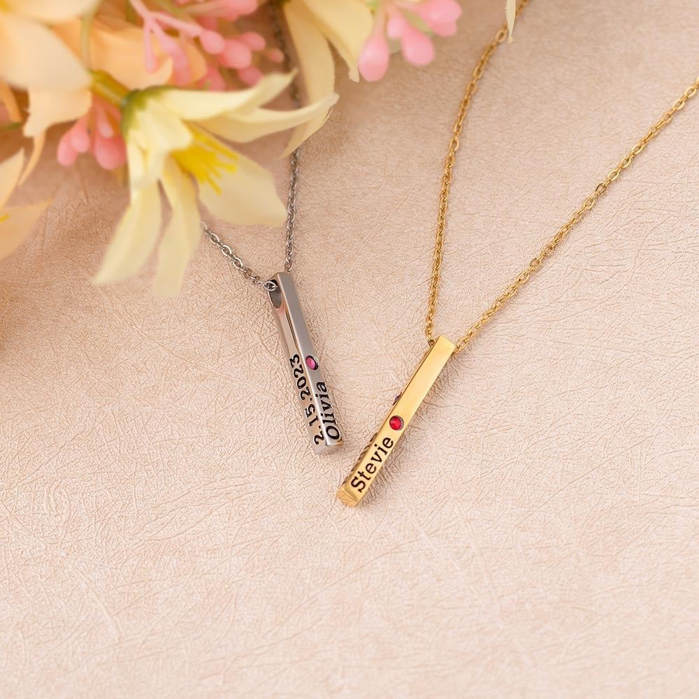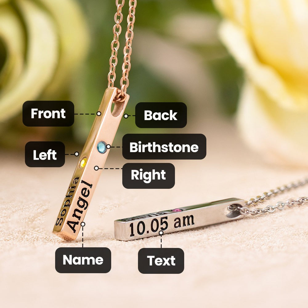 Personalized Engraved Birthstone Necklace with Name, Newborn Name&Date Memorial Necklace, 4-Sided Bar Necklace With Birthstone, Gift for New Mom