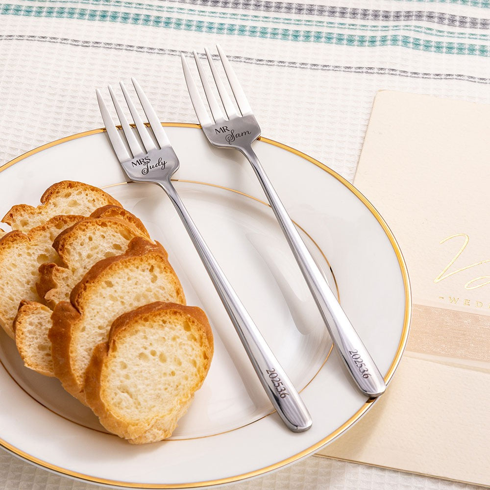 Personalized Engraved Wedding Cake Cutting Set of 2, Custom Name Date Knife Fork with Gift Box, Bridal Party Favor, Housewarming Gift for Couples