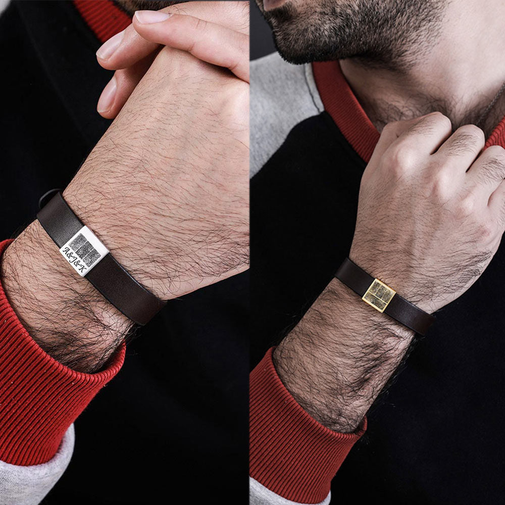 Personalized Fingerprint Men's Leather Bracelet