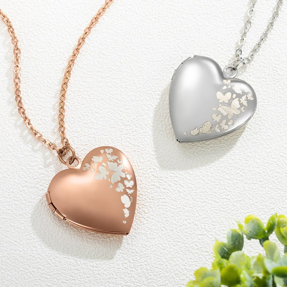 Personalized Heart Locket Necklace with Butterfly, Heart Necklace with Photo, Dainty Necklace, Keepsake Photo Necklace, Memorial Jewelry for Wife/Mom