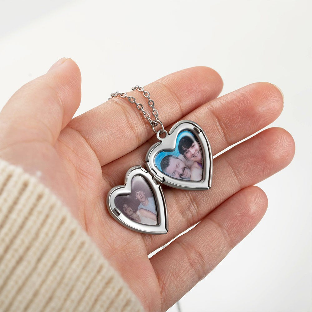 Photo in the Heart Pendant - You can upload the photo to customized this necklace. When you open the heart locket, you will see the person in the photo just likes he's always there for you.