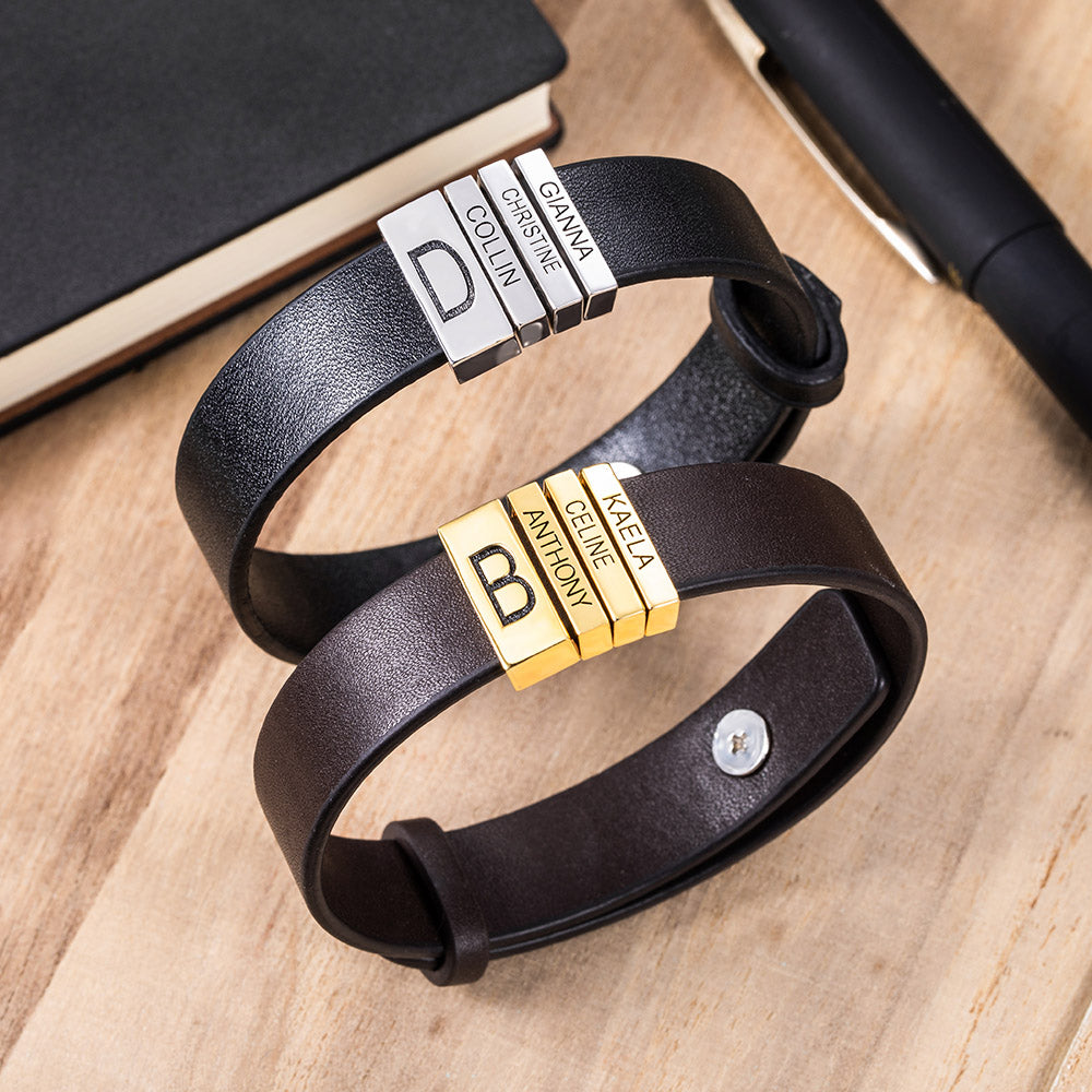 Show your dad you love him – give your dad an accessory to achieve a classic style with a leather bracelet which has silver accents. This personalized leather bracelet can be engraved with an initial, making it a unique and memorial accessory to wear every day.