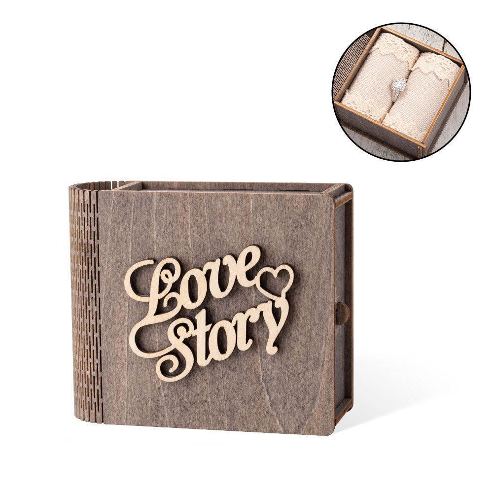 Personalized Love Story Wedding Ring Box, Wood Mini Book Ring Box, Double Pillow Ring Jewelry Box, Engagement/Wedding/Proposal Gift for Couple/Friend