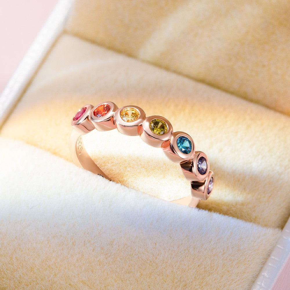 Exquisite Design - With a minimalist style, this ring perfectly highlights the multi-colored rainbow stones, which are a harmonious combination. In addition, the 7 colors of rainbow represent the chakra energy points, generating supernatural beauty, transformation and enlightenment.