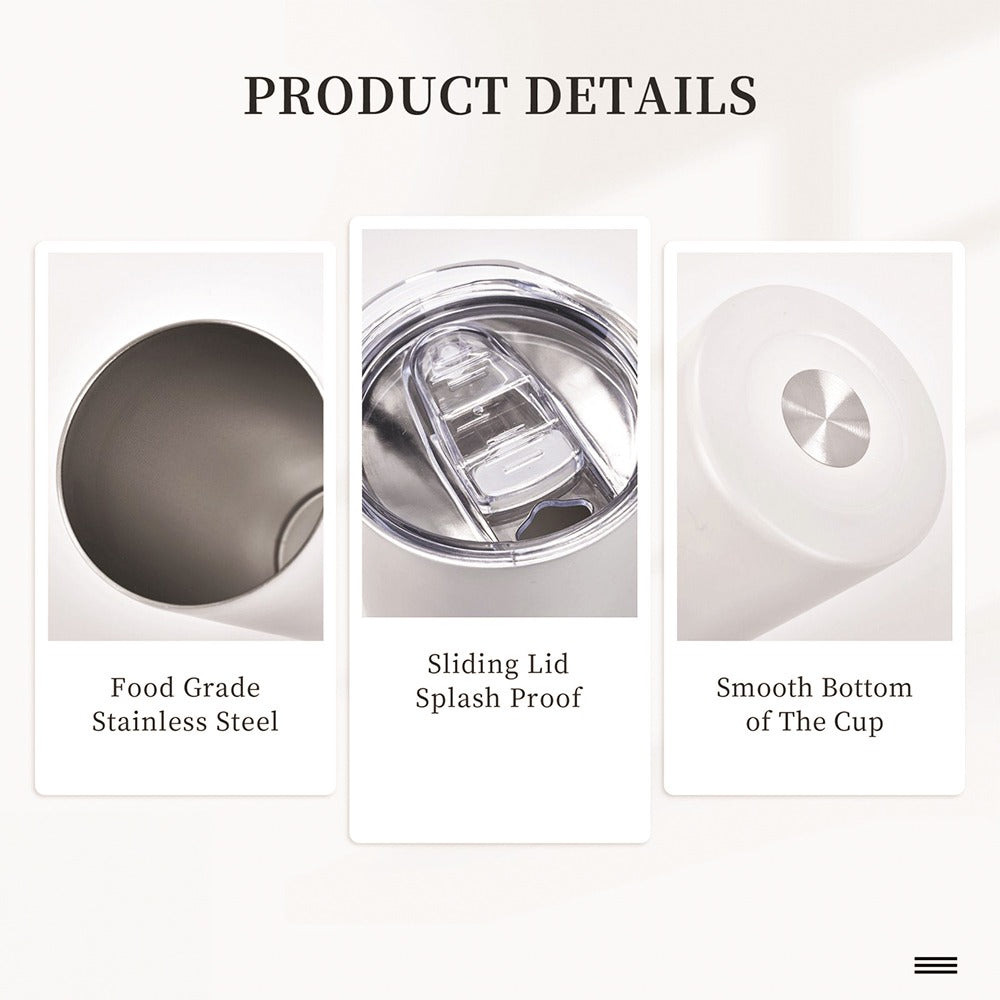 Thermos Cup - The tumbler has a 20oz capacity, providing ample space for hot or cold beverages. It's designed for portability, making it convenient for travel, work, or outdoor activities.