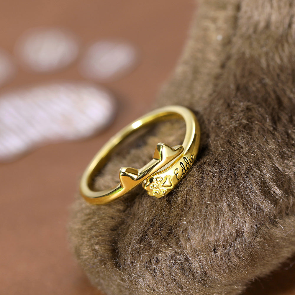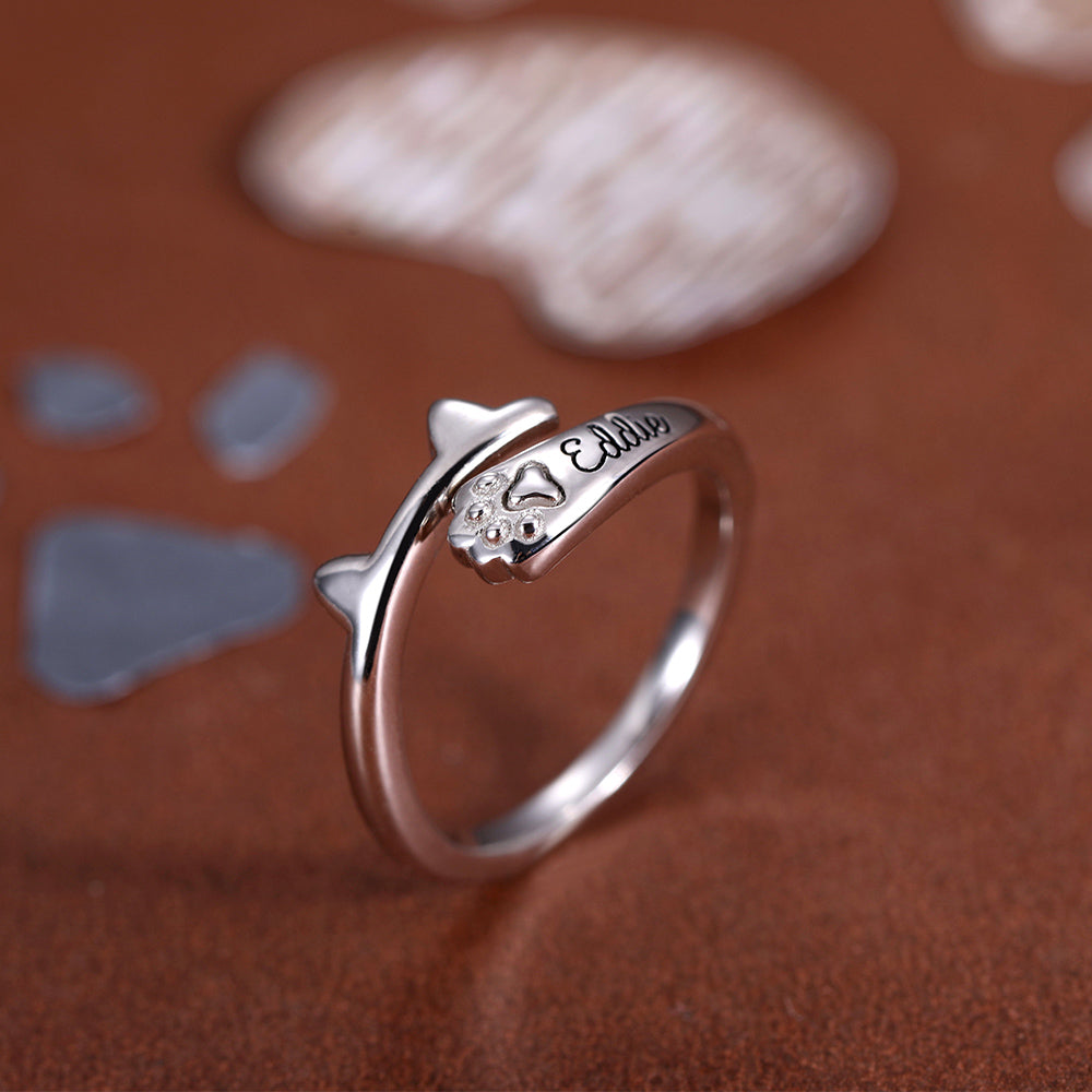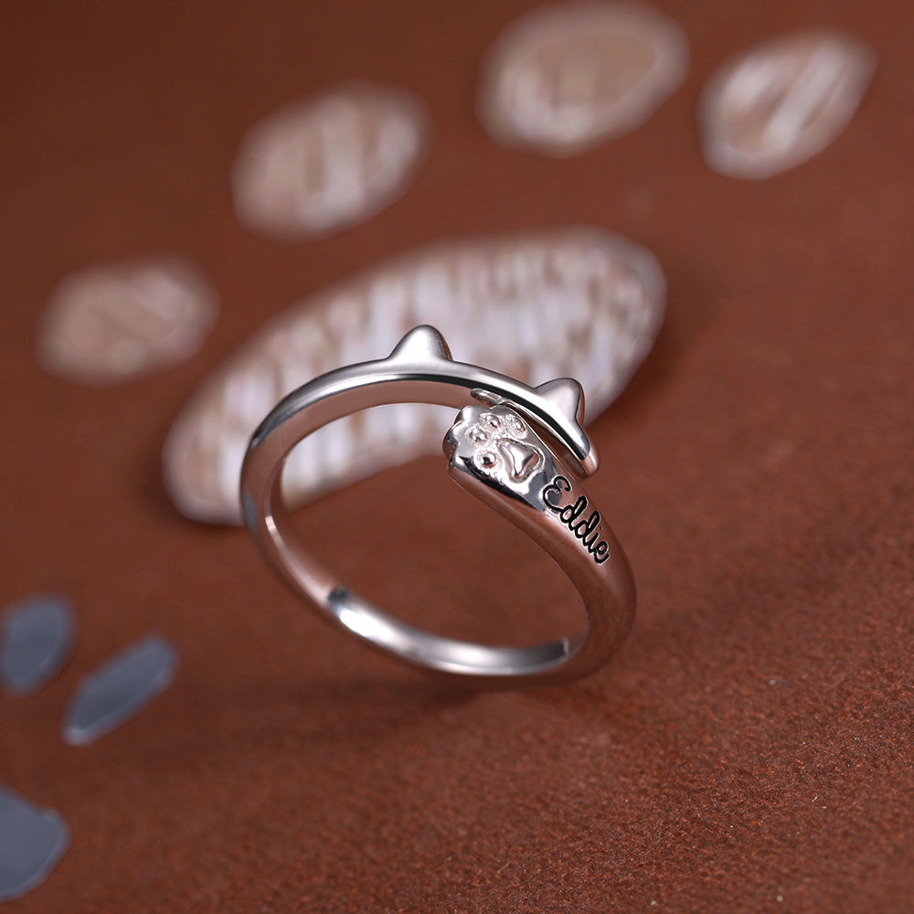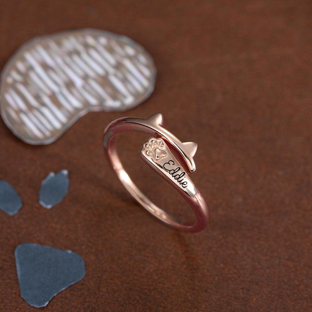 No cat lovers can say no to this adorable cat ring! Polished to a bright shine, the delicate details and meaningful personalization make the ring a great gift for any fashion girl. The cat ring with the wrap-around design is really special and unique, and everyone will be attracted by the lovely cat ears and paw on the ring. Customize the name of your cat or any meaningful name, keep your best friend close to you wherever you are.