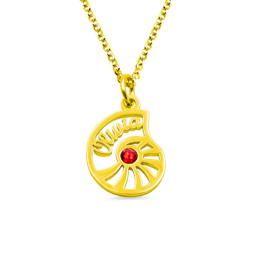 Personalized Name Conch Necklace and Bracelet with Birthstone in Gold