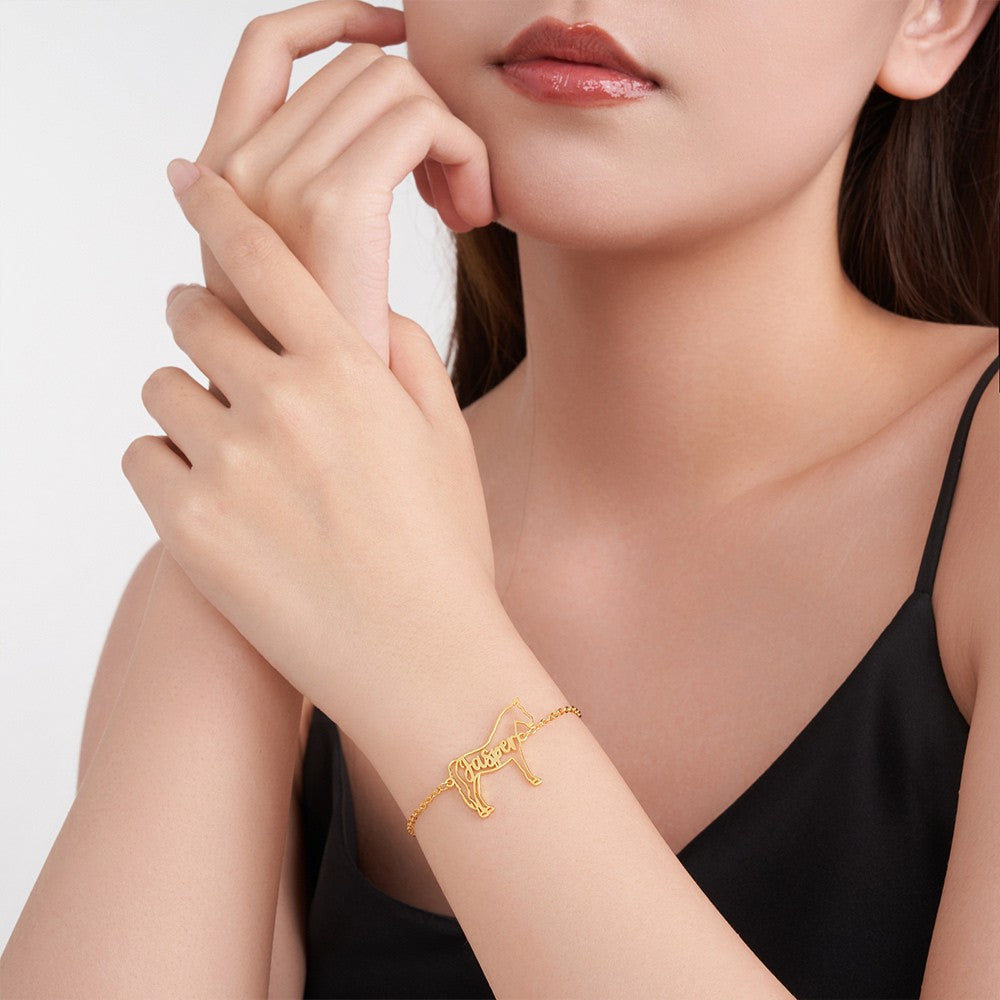 Horse Silhouette Design - This beautiful bracelet features a delicate horse silhouette and name, symbolizing strength, freedom, and the special bond between horse lovers and their beloved animals. The sleek design offers a stylish yet meaningful touch to everyday accessories.